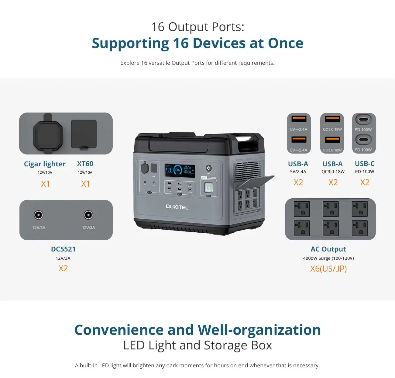 Глобальный Oukitel P2001E 2000 Вт LiFePO4 UPS супер быстрая зарядка для домашнего использования портативная электростанция солнечный генератор для наружного использования