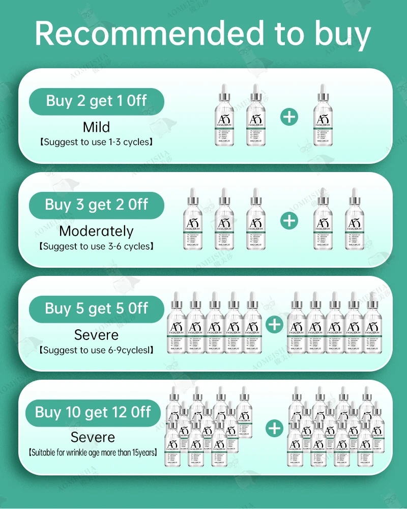 Рекомендуется использовать 1-3 флакона от легких морщин, чтобы уменьшить тонкие линии и улучшить тусклость кожи;