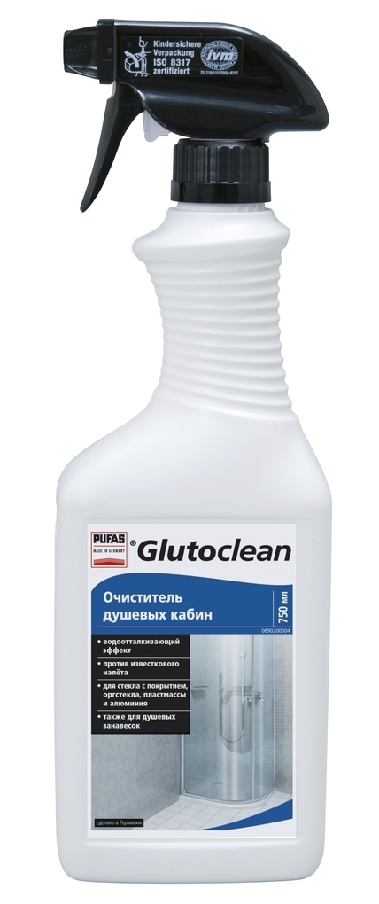Cамостоятельно и эффективно удаляет известковые и мыльные налёты на облицовочной плитке, швах между облицовочной плиткой, стеклянных разделительных стенах и делает поверхность гигиенически чистой.