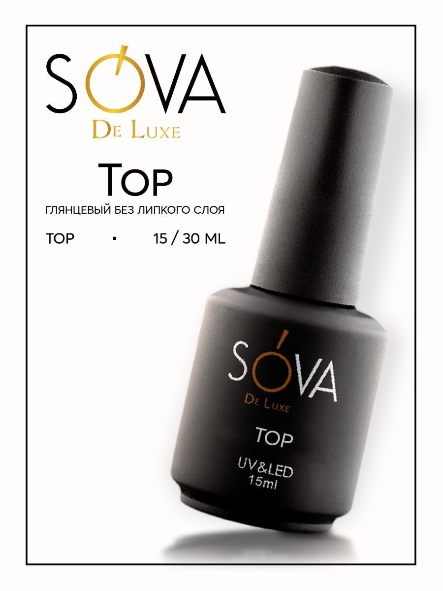 Глянцевый топ для гель лака без липкого слоя Sova de luxe 15 мл финишное покрытие