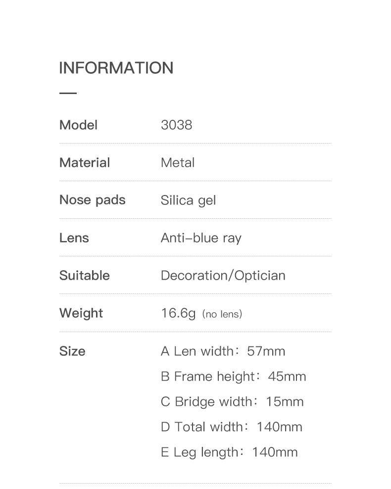 Model Number Women Glasses Frame 3038