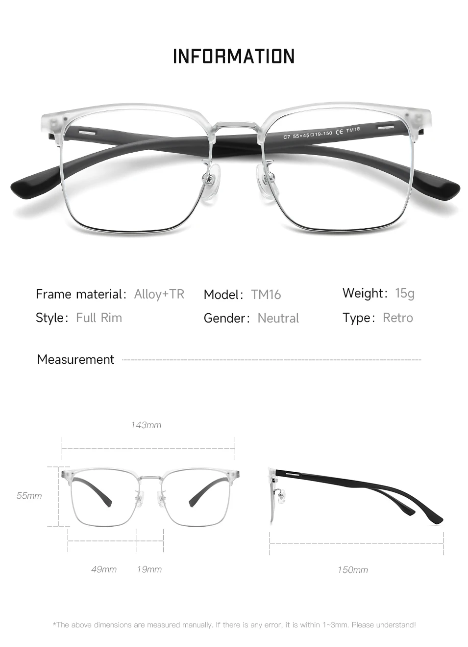 Gmei оптическая Ультралегкая мужская оправа для очков из сплава TR90 Женская Ретро квадратная оправа для очков TM16