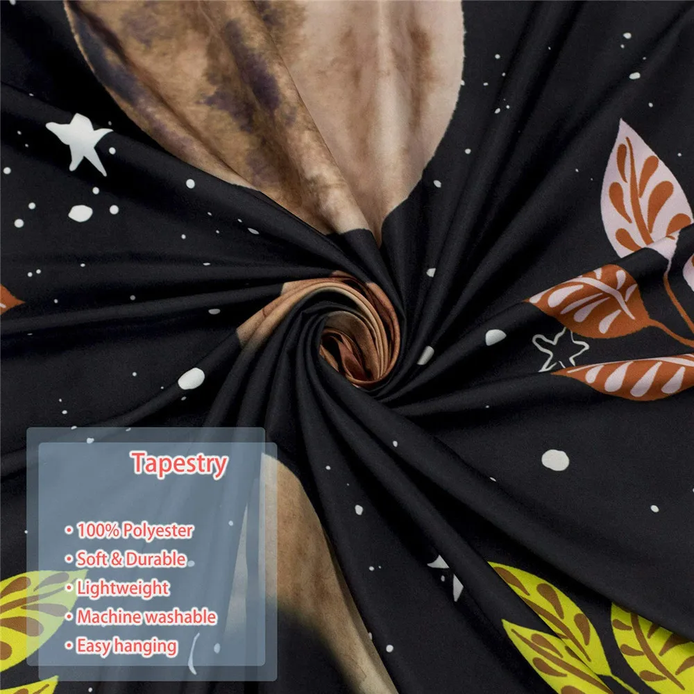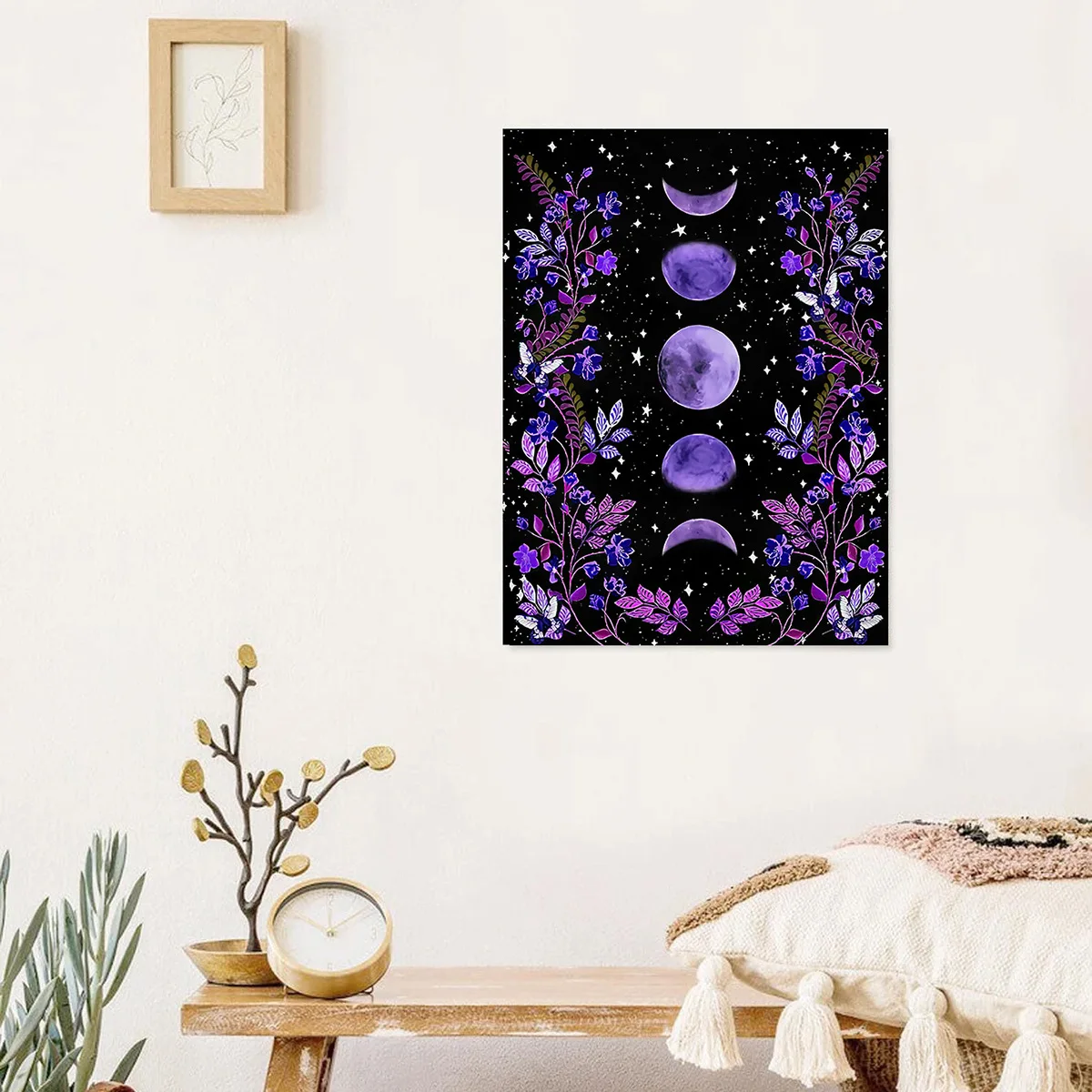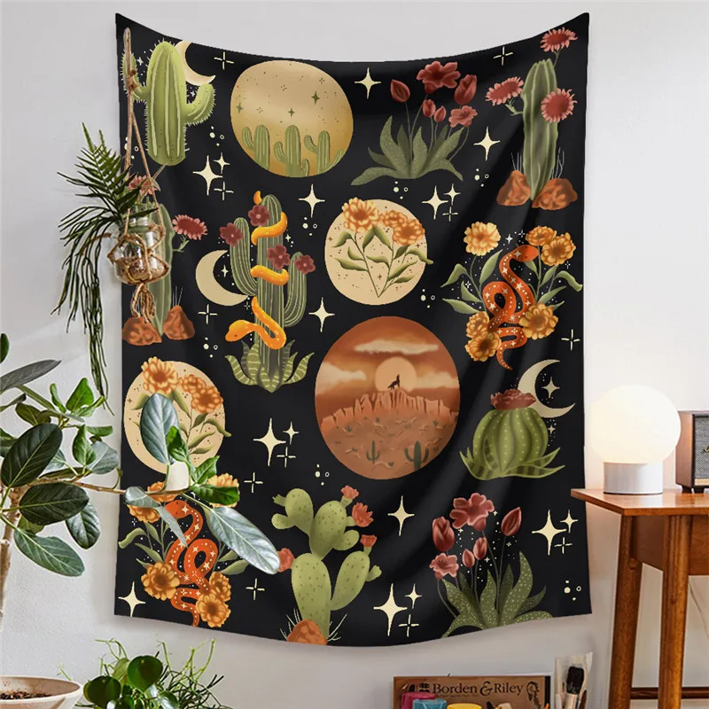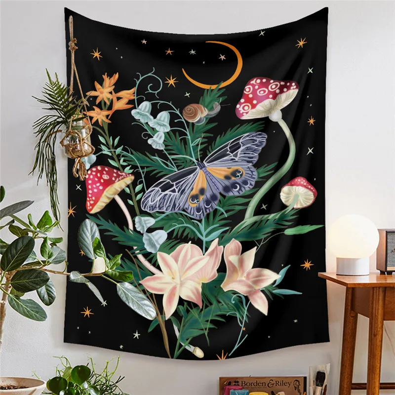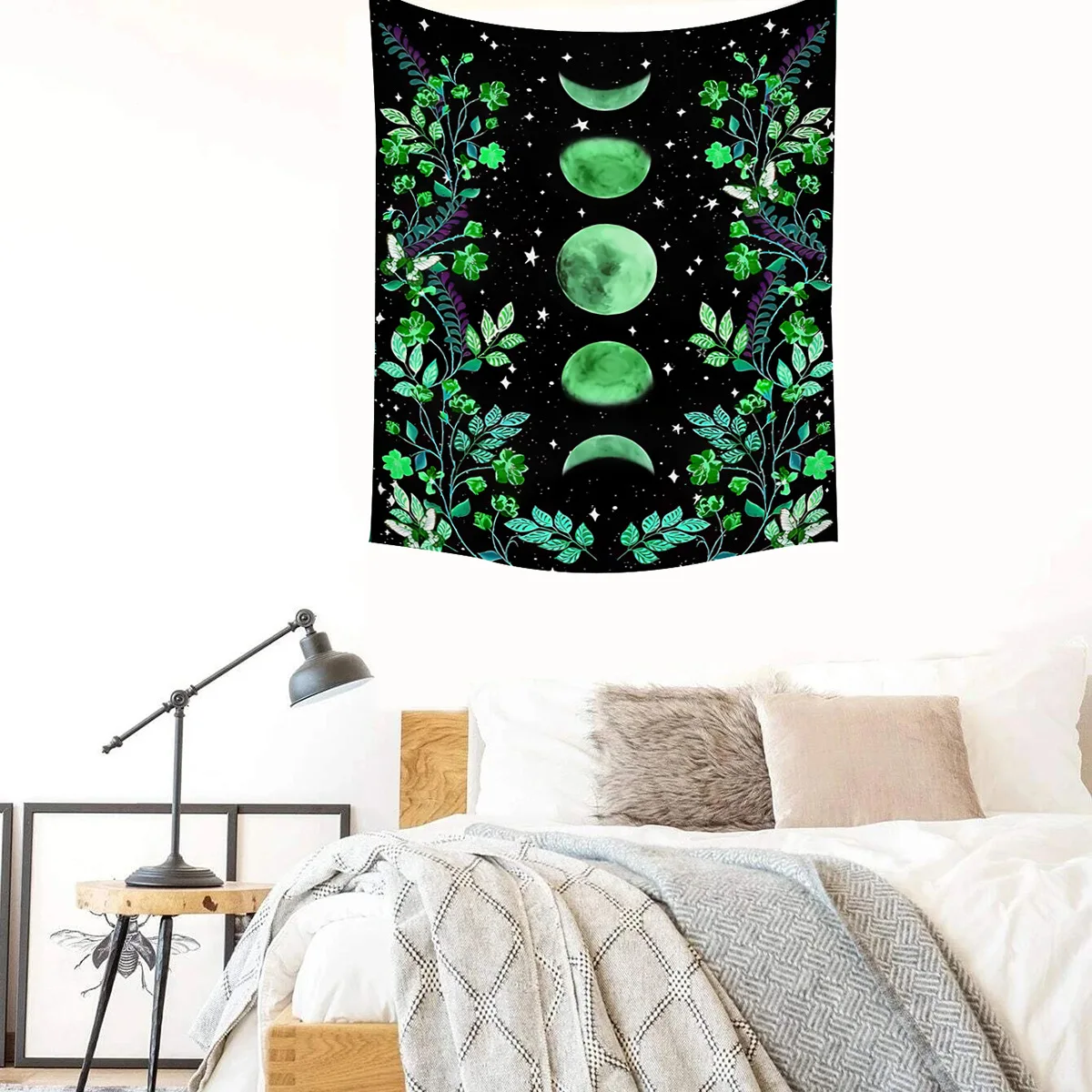Гобелен с Луной, настенный гобелен в стиле бохо, гобелен с лунным светом для растений, Садовый гобелен, звездная ночь, ковер, черный фон, цветочный гобелен, Декор