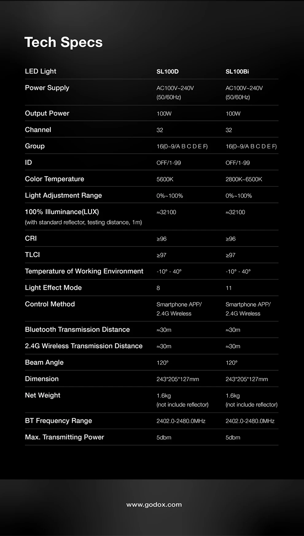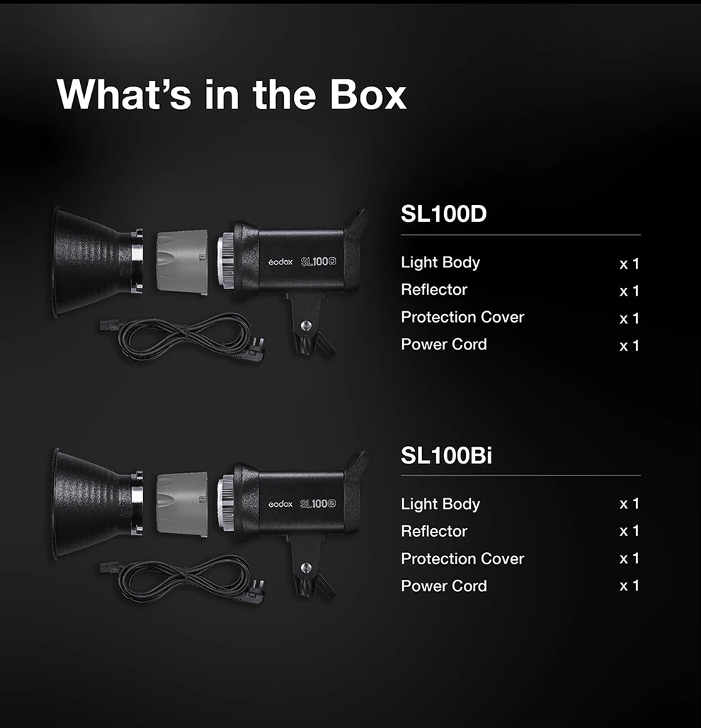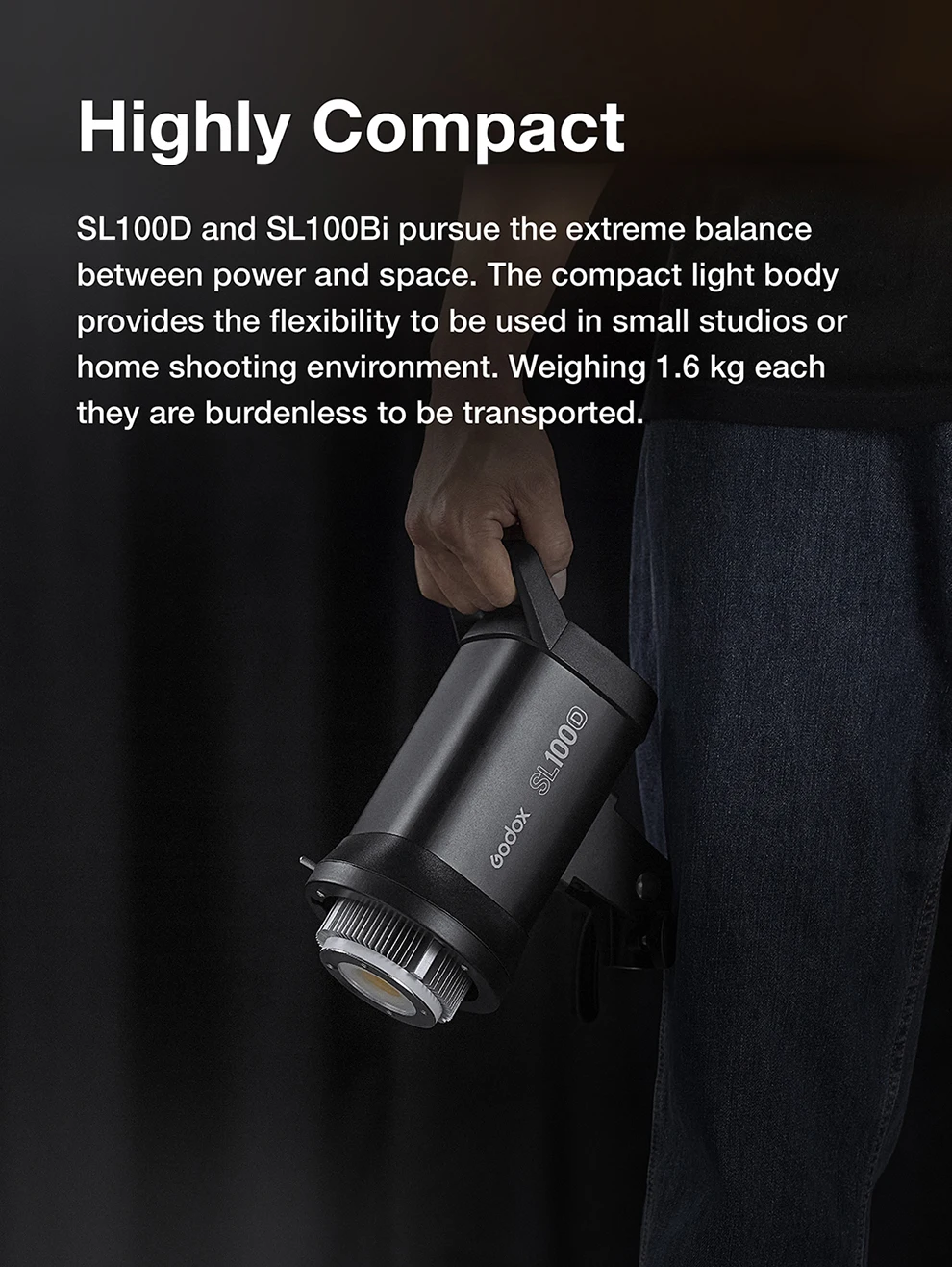 Godox всегда разрабатывает новые продукты для удовлетворения всех потребностей в освещении. Для тех, кто стремится к лучшей мощности при ограниченном бюджете, у Godox есть SL100D и SL100Bi для вас.