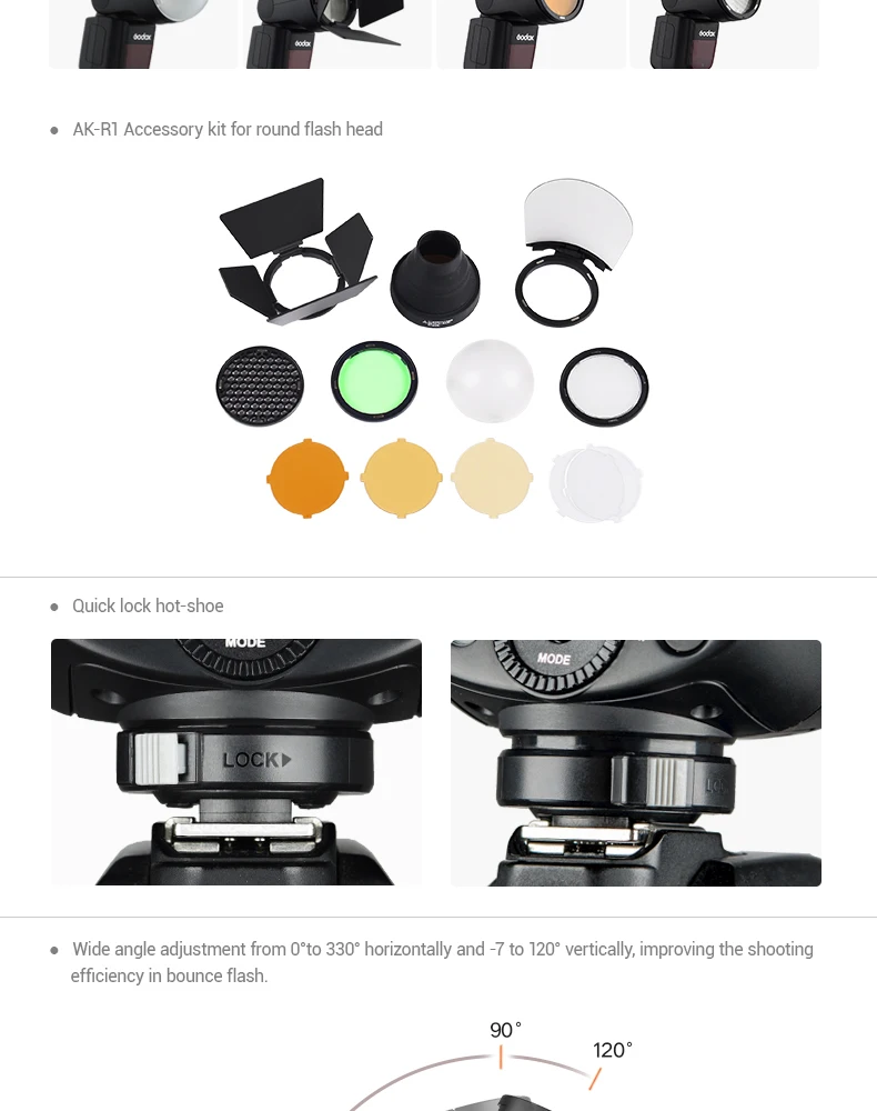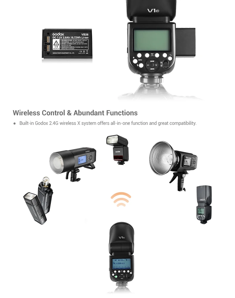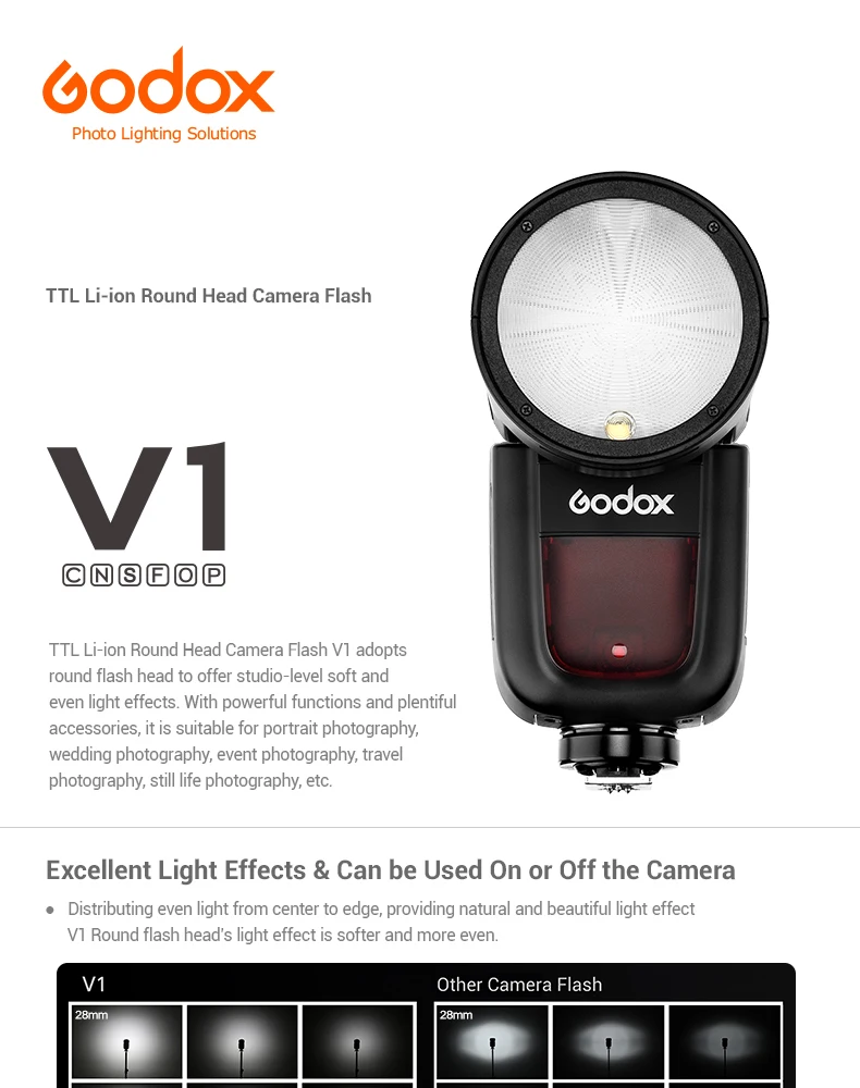 Godox V1 использует круглую головку вспышки, чтобы обеспечить мягкие и ровные световые эффекты студийного уровня.