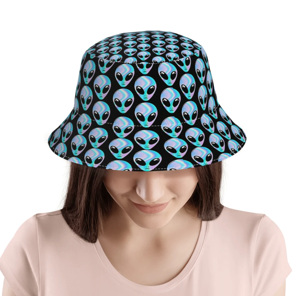 Голографическая Синяя кожаная шляпа рыбака Alien Head Тени Панамы хип-хоп для женщин и мужчин аксессуары для кемпинга и пешего туризма
