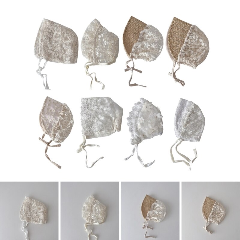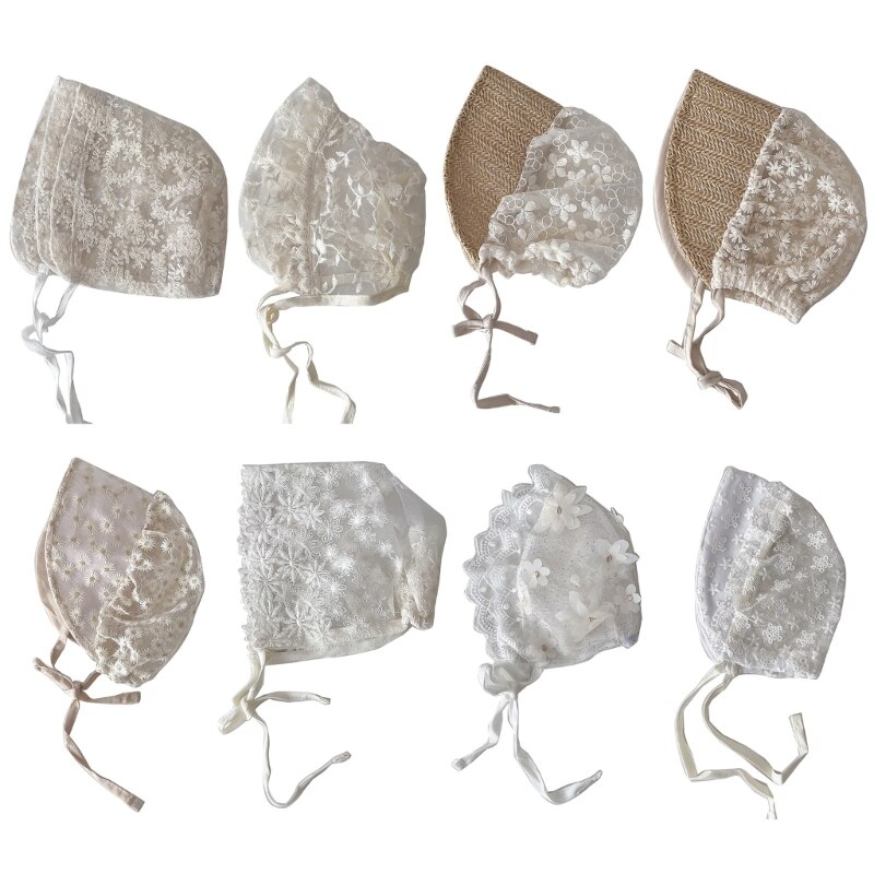 Шляпа-чепчик для маленьких девочек: капот для маленьких девочек, разработанный с кружевной вышивкой, цветком и длинными полями, с 8 дополнительными стилями на выбор, тонкий и дышащий, может легко сочетаться с другим нарядом девочки, красивым с винтажным внешним видом.
