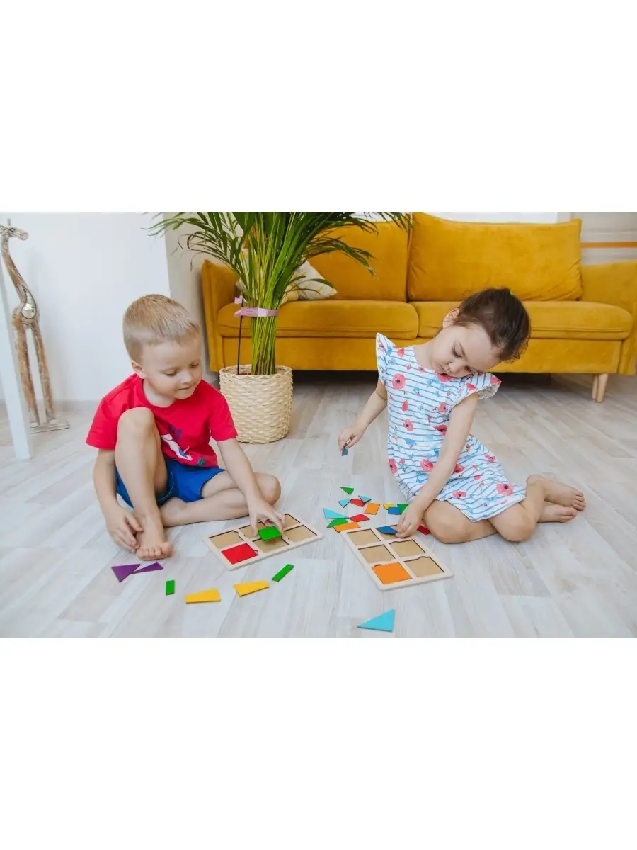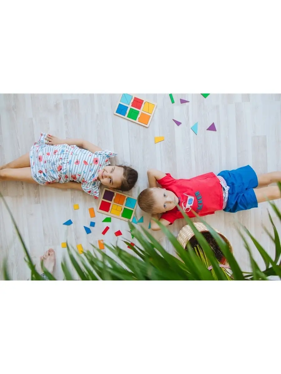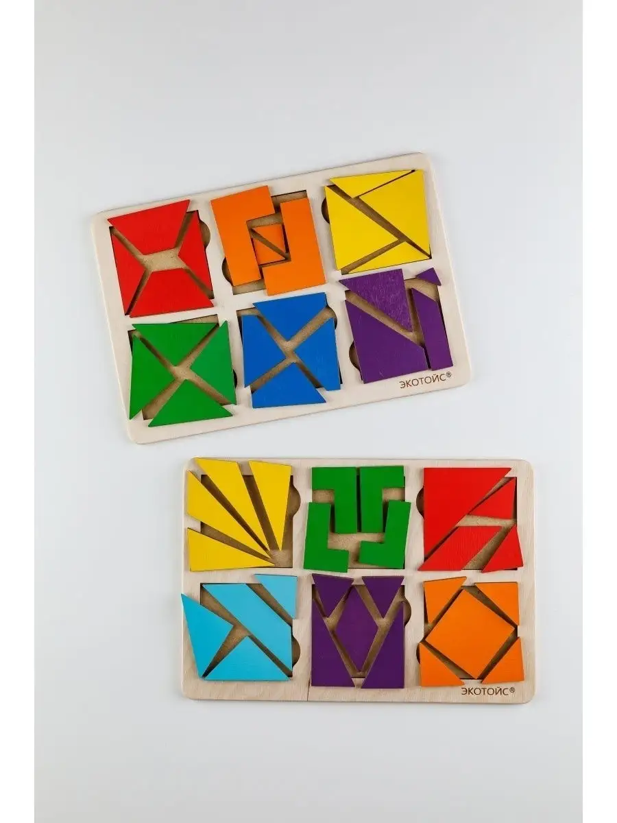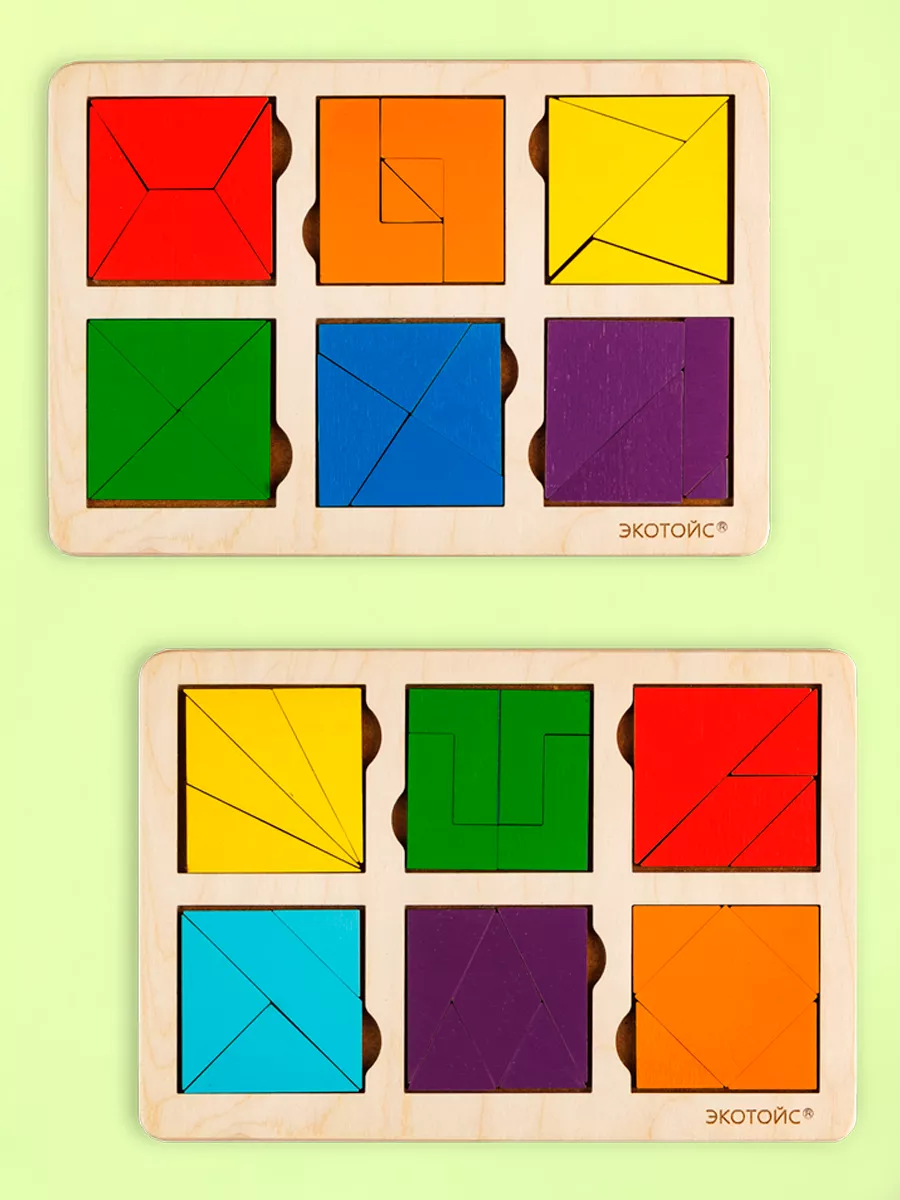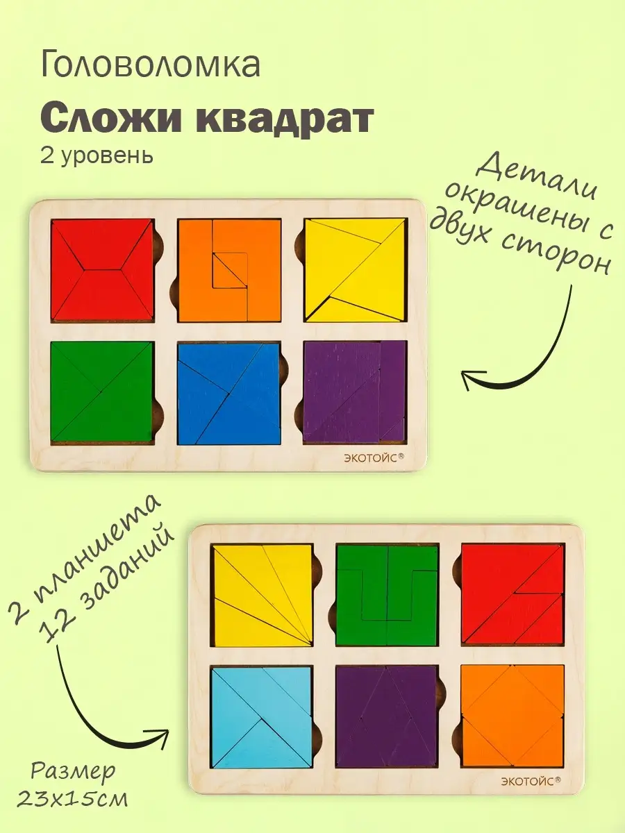 Комплектация 12 головоломок; Деревянная основа; Квадраты Никитина 2 уровень; коробка