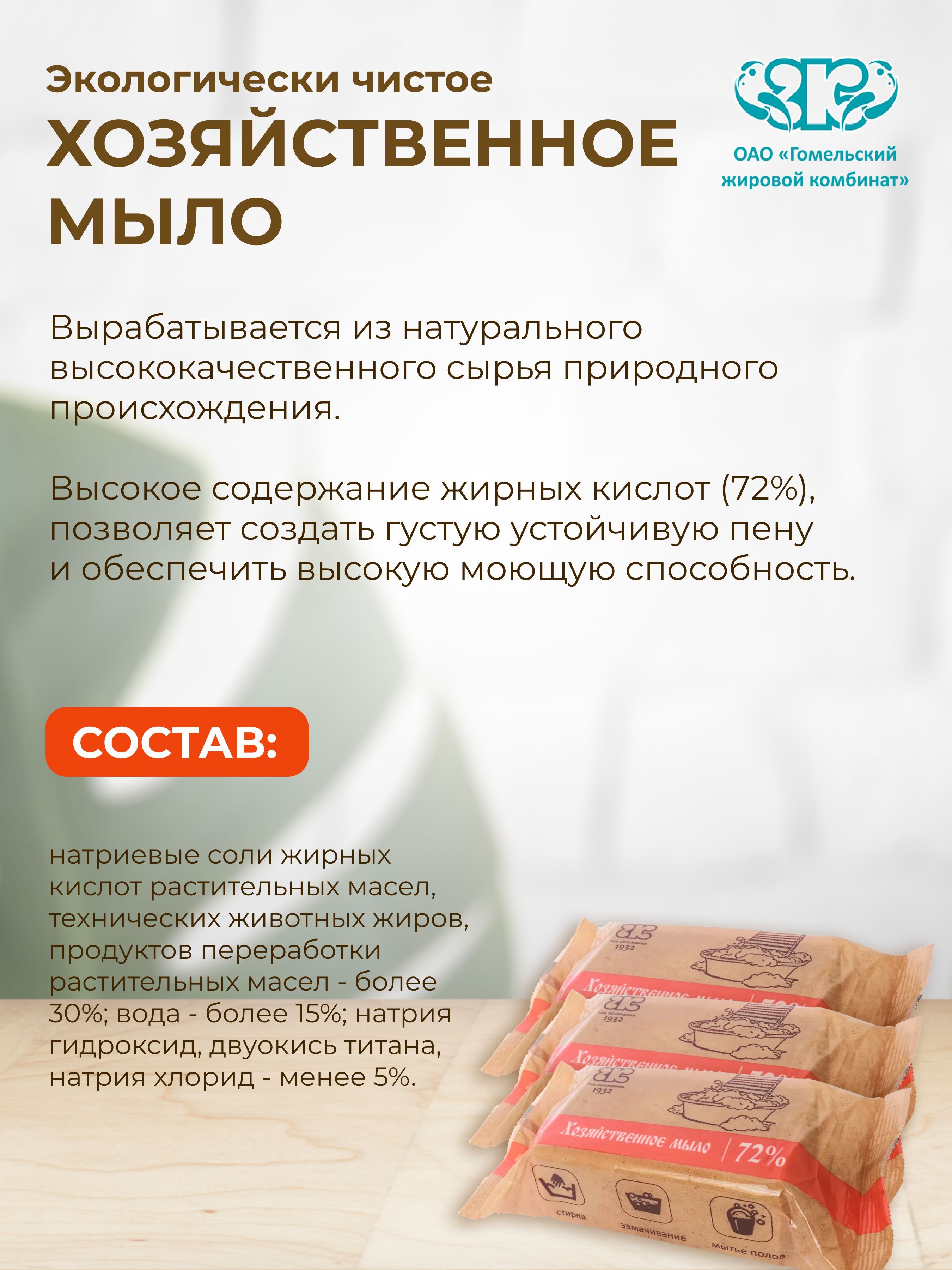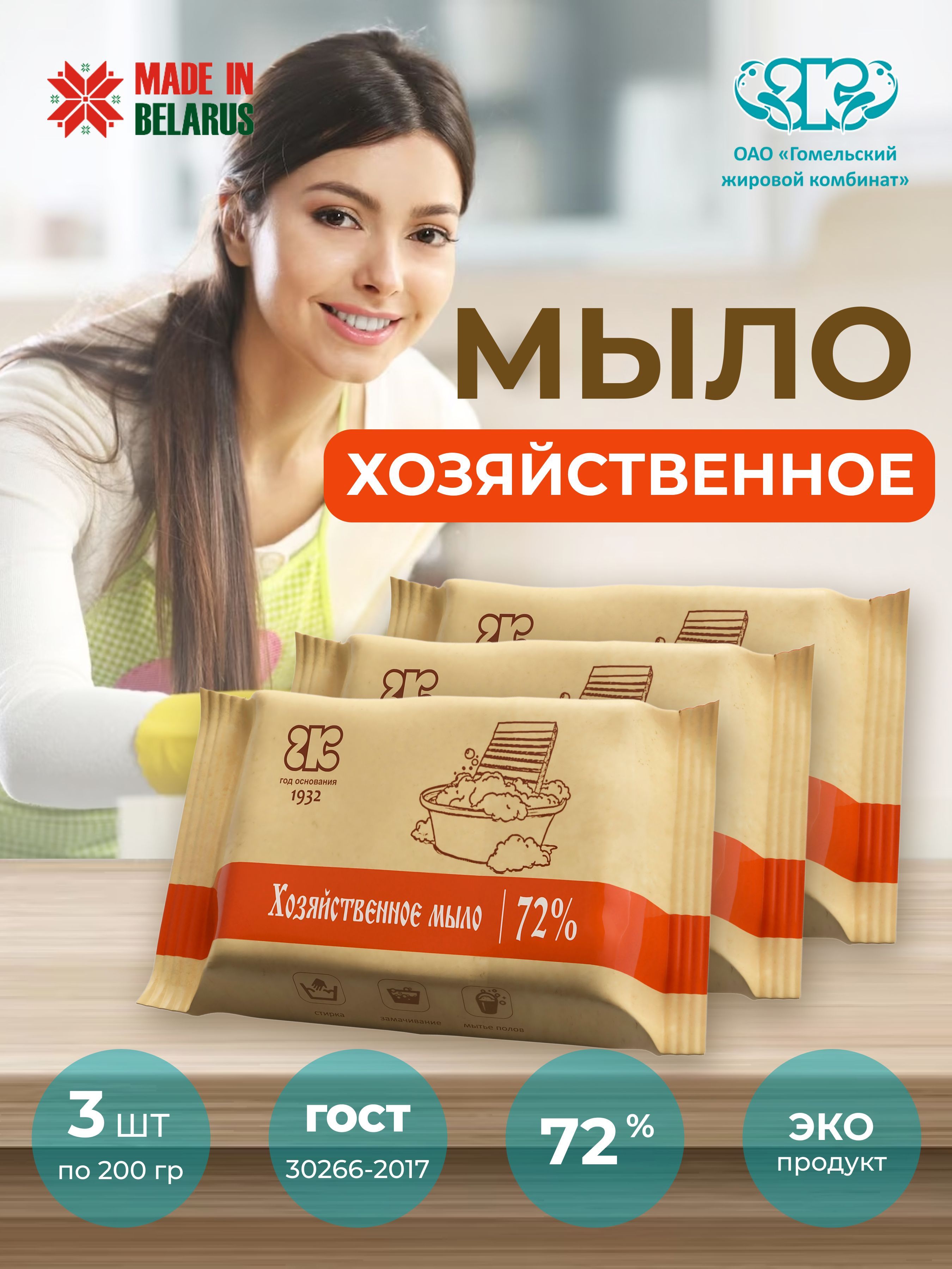 Гомельский жировой комбинат Мыло хозяйственное 72%, 3 шт по 200 гр