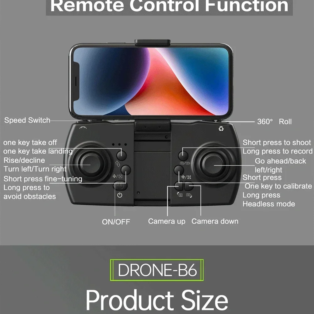 Взлет одной кнопкой/посадка одной кнопкой/подъем/спуск/влево/вправо/Поворот на 360 °/Безголовый режим/скорость и медленная скорость/Сброс одной кнопкой/точное направление-регулировка/Угол регулировки объектива