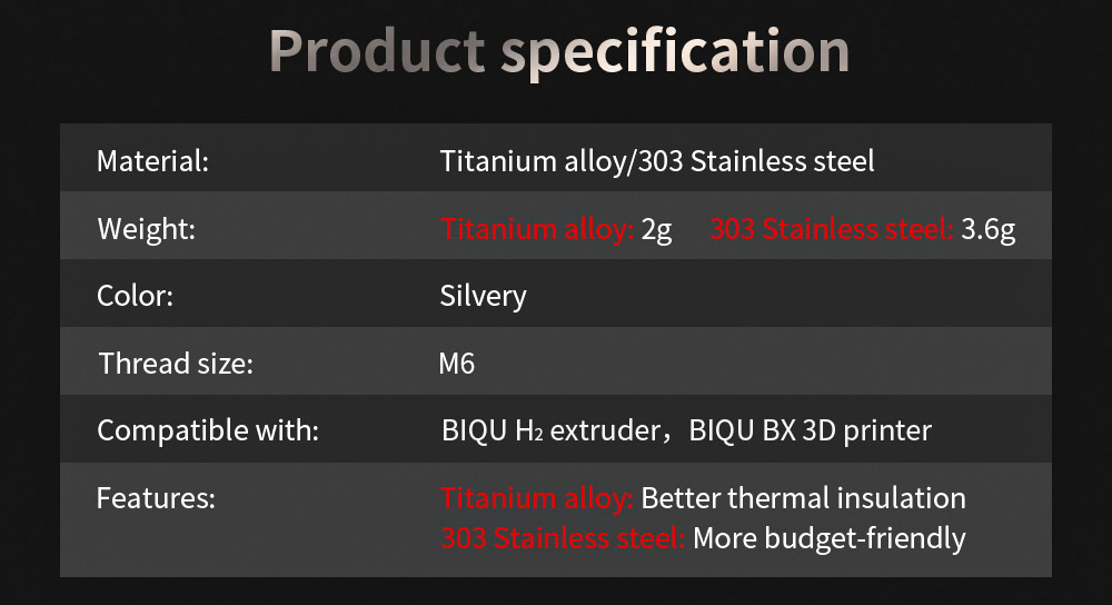 Горло из титанового сплава BIQU H2 для экструдера H2 VS Titan MK8 Hotend Ender3 V2