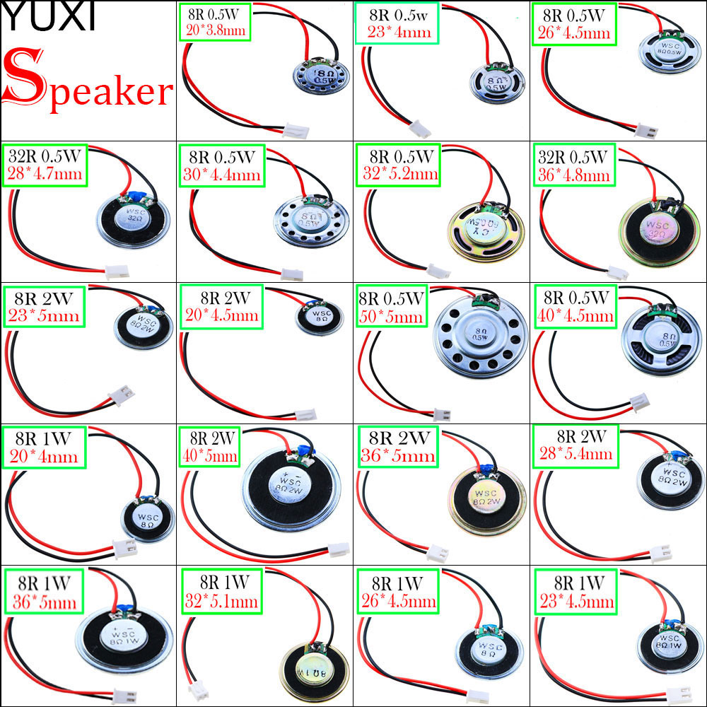 Горячая Распродажа 8R 32 Ом 0,5 Вт 1 Вт 2 Вт ультратонкий динамик диаметром 20 23 26 28 30 32 36 40 50 мм с клеммным проводом длиной 1,25 мм 14 см