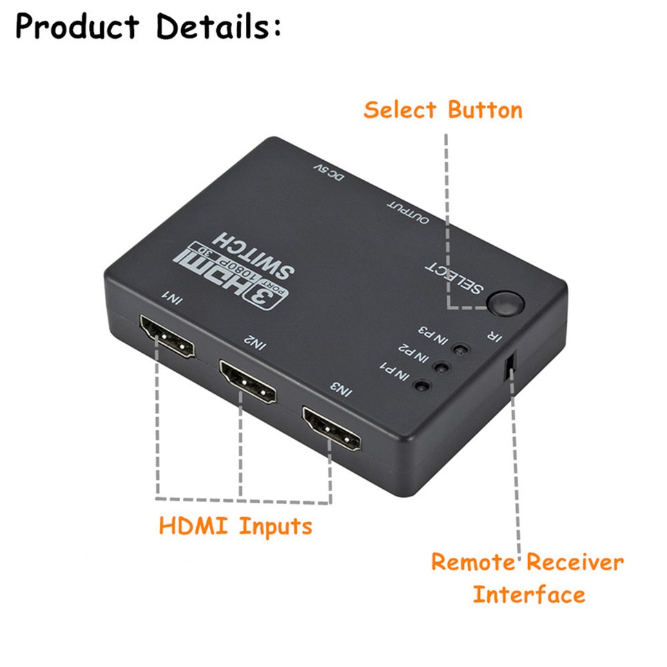 2. Коммутатор HDMI может поддерживать видеоформаты, включая 720p,1080i,1080p. Этот продукт также можно разместить на конце длинного кабеля HDMi для регенерации сигнала HDMI.