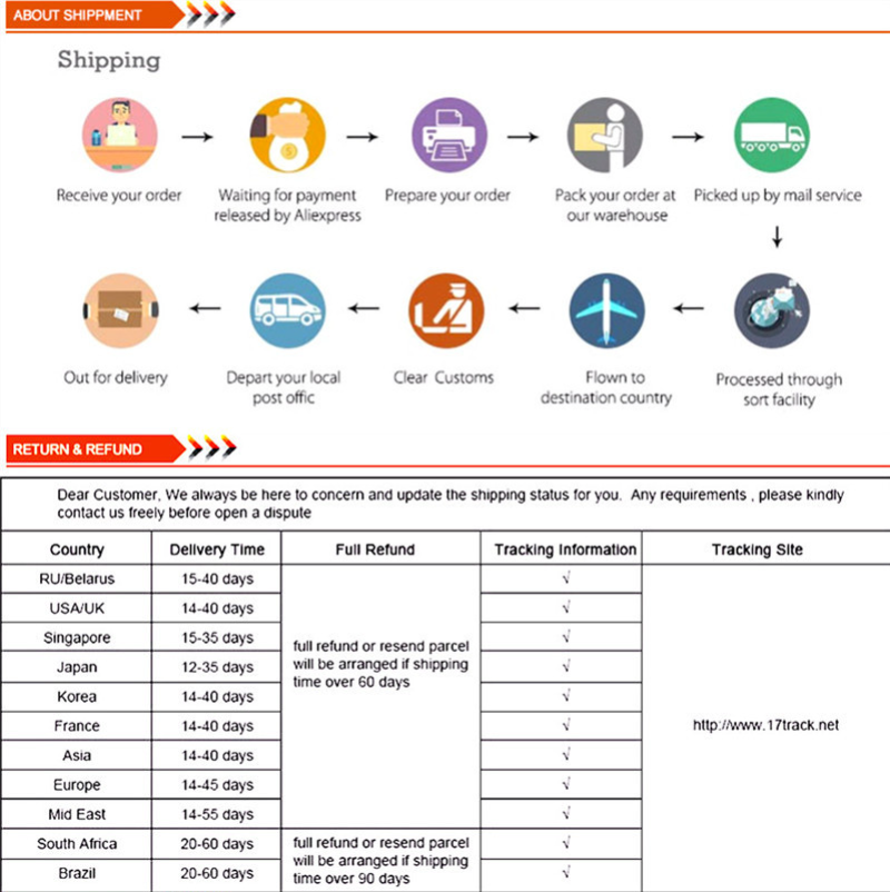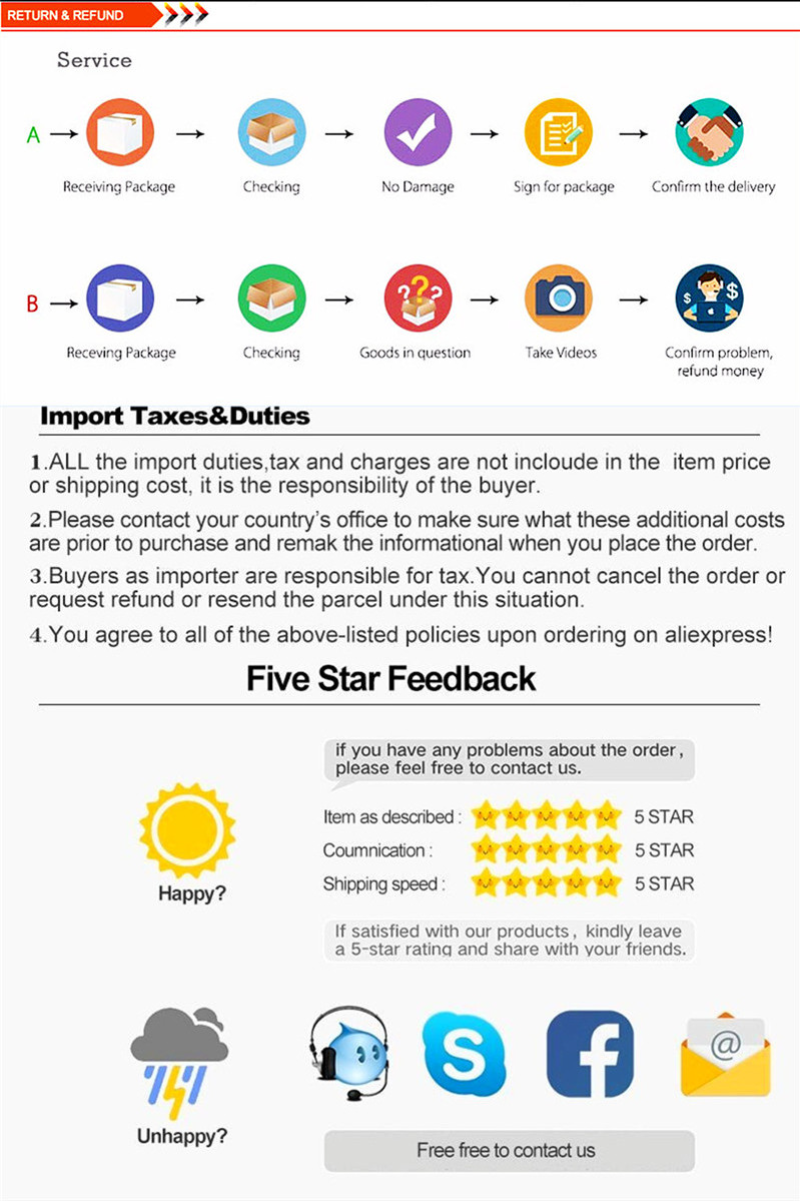 4. Если у вас есть какие-либо вопросы, пожалуйста, свяжитесь с нами, прежде чем оставить отрицательный отзыв, мы постараемся сделать все, чтобы обслужить вас. Спасибо за понимание!
