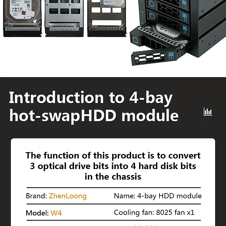 Канавки предназначены на боковой панели 4-bay жесткий диск клетка. Игнорируя выпуклаю заготовку в оптическом приводе шасси, она может быть установлена непосредственно.