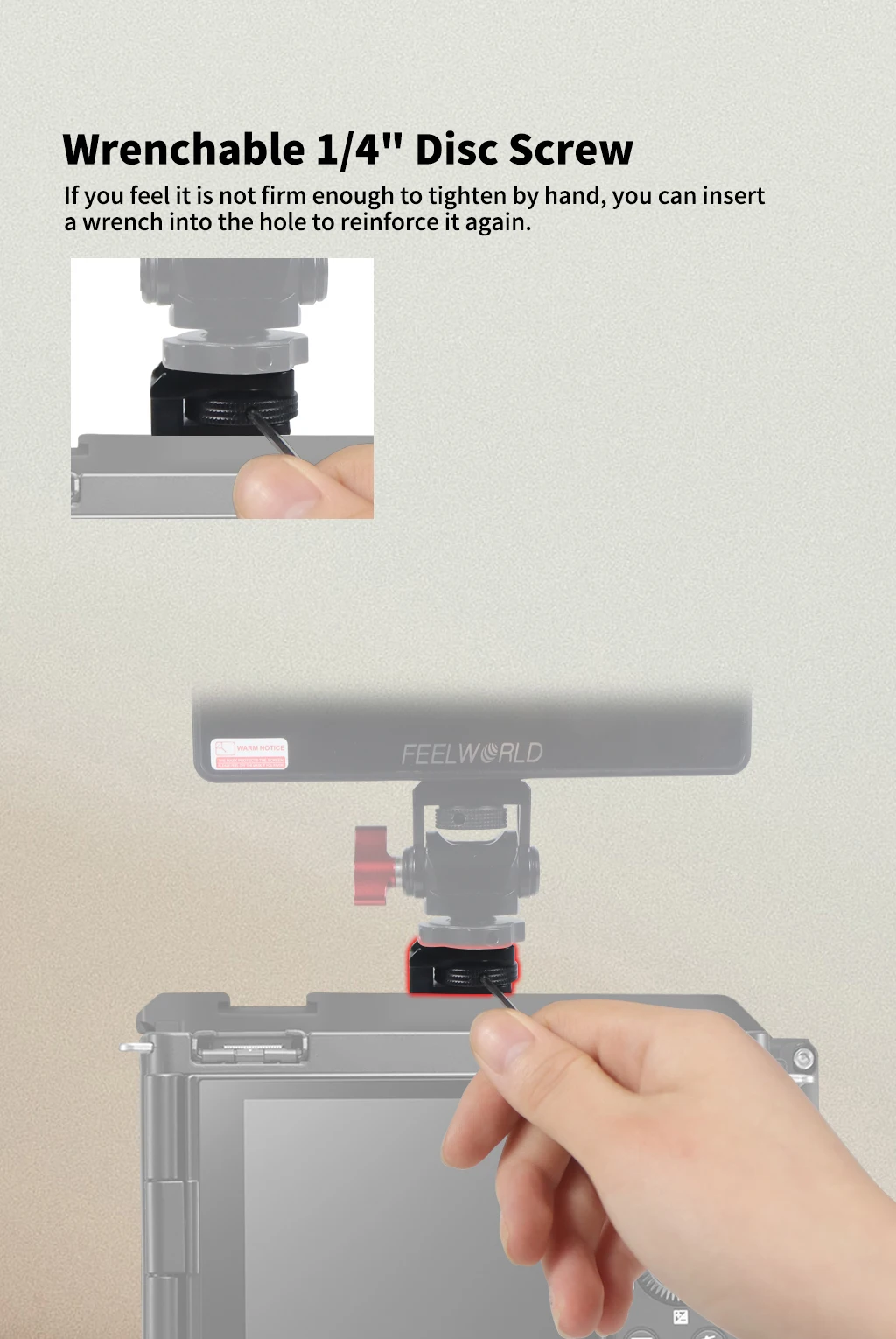 3. Дисковые винты 1/4 дюйма, которые можно усилить гаечными ключами. Если рука недостаточно твердая, гаечный ключ можно снова вставить в отверстие для усиления;