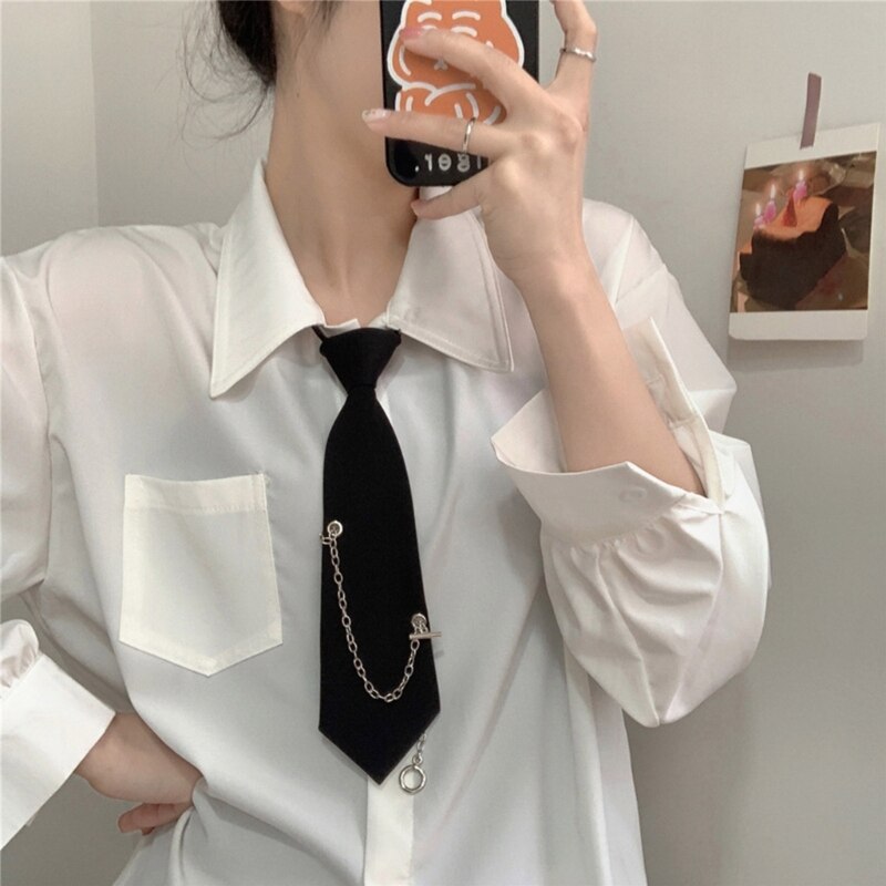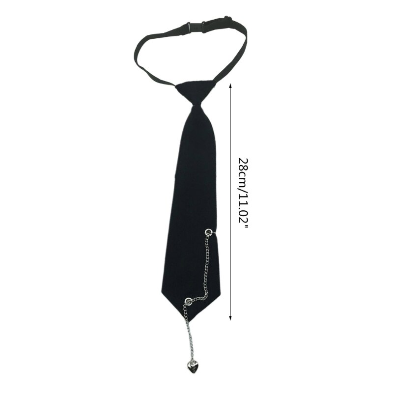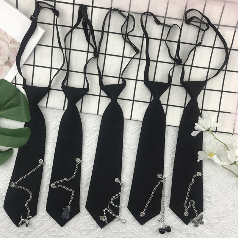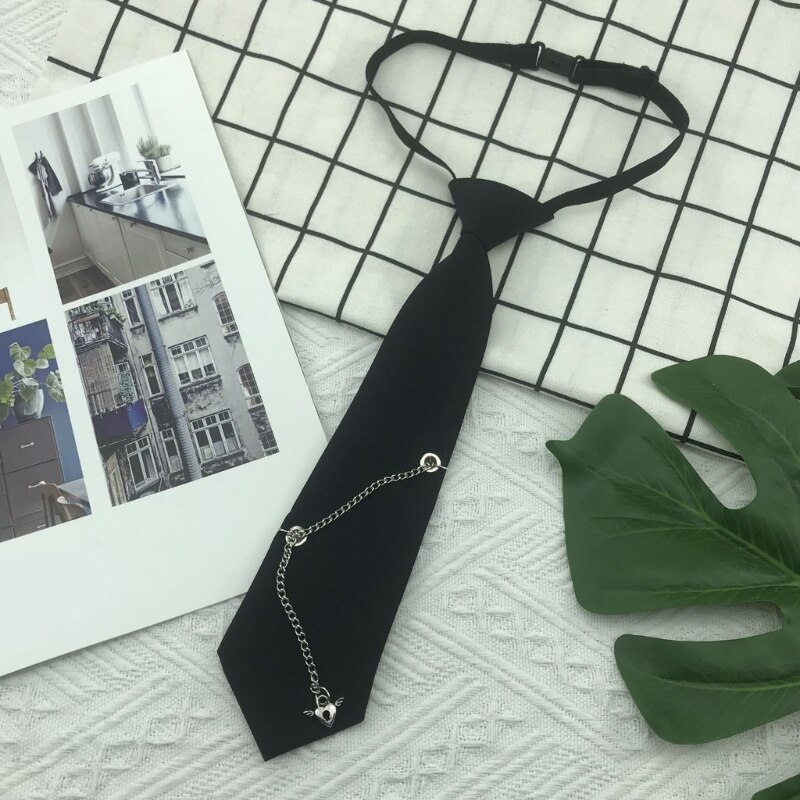 Готический галстук для женщин и мужчин, Студенческая униформа, черный галстук с металлической цепочкой и кисточкой в стиле панк