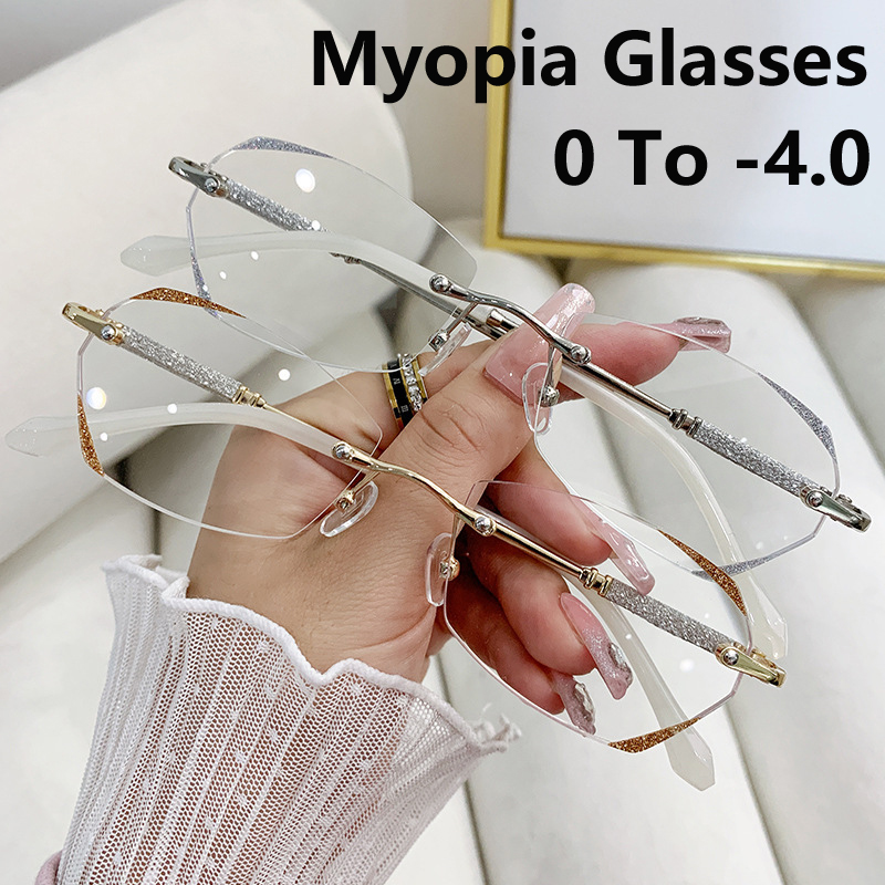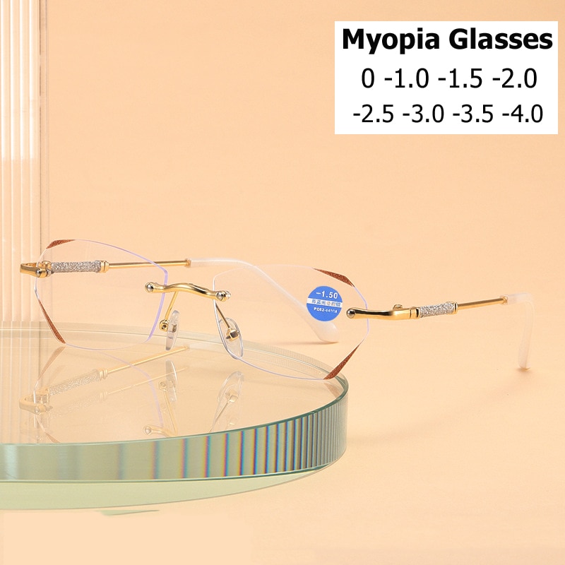 Готовые Очки для близорукости, роскошные очки с бриллиантовой оправой без оправы, с близорукостью от 0 до-6,0