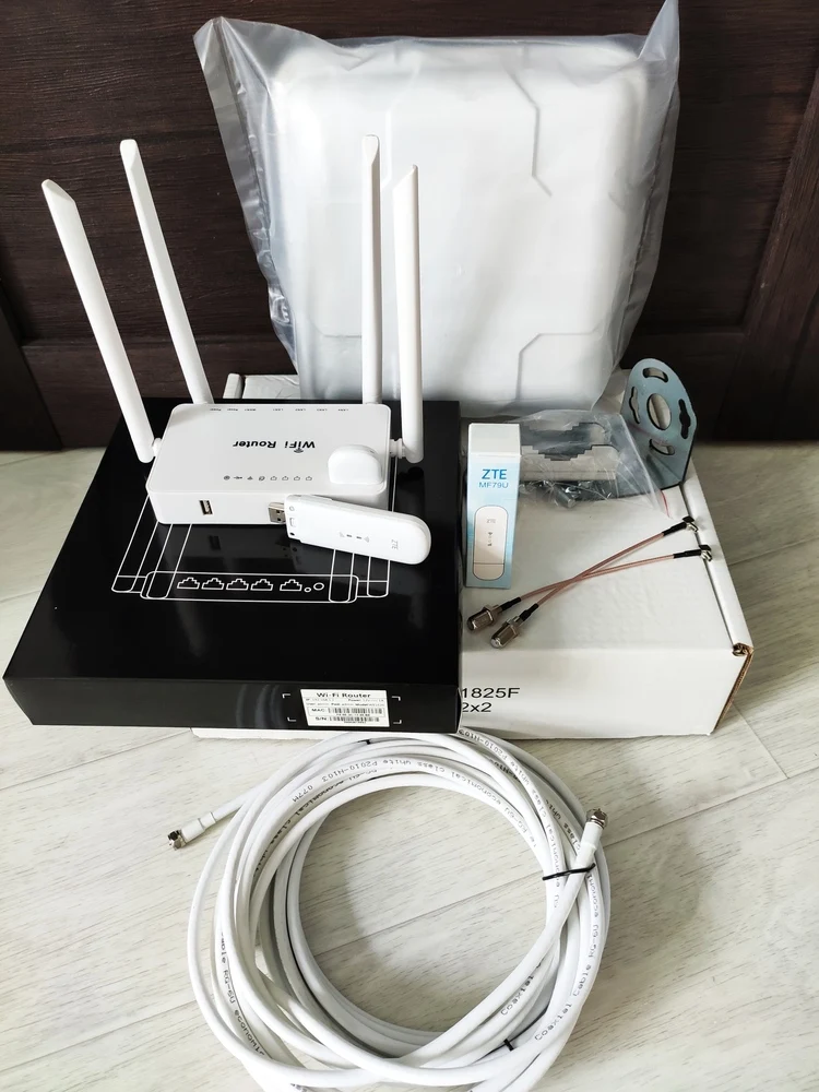 Комплект оборудования для самостоятельной установки интернета на даче, в частном доме, офисе, автосервисе и тд. Есть все, что нужно. Установка простая, не требует особых