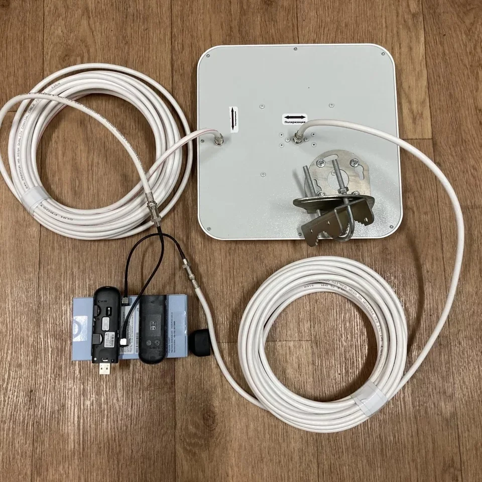 Обычно, вполне хватает проводов из комплекта, ведь чем длинее провод, тем больше потерь. Лучше разместить роутер и модем ближе к месту монтажа антенны.