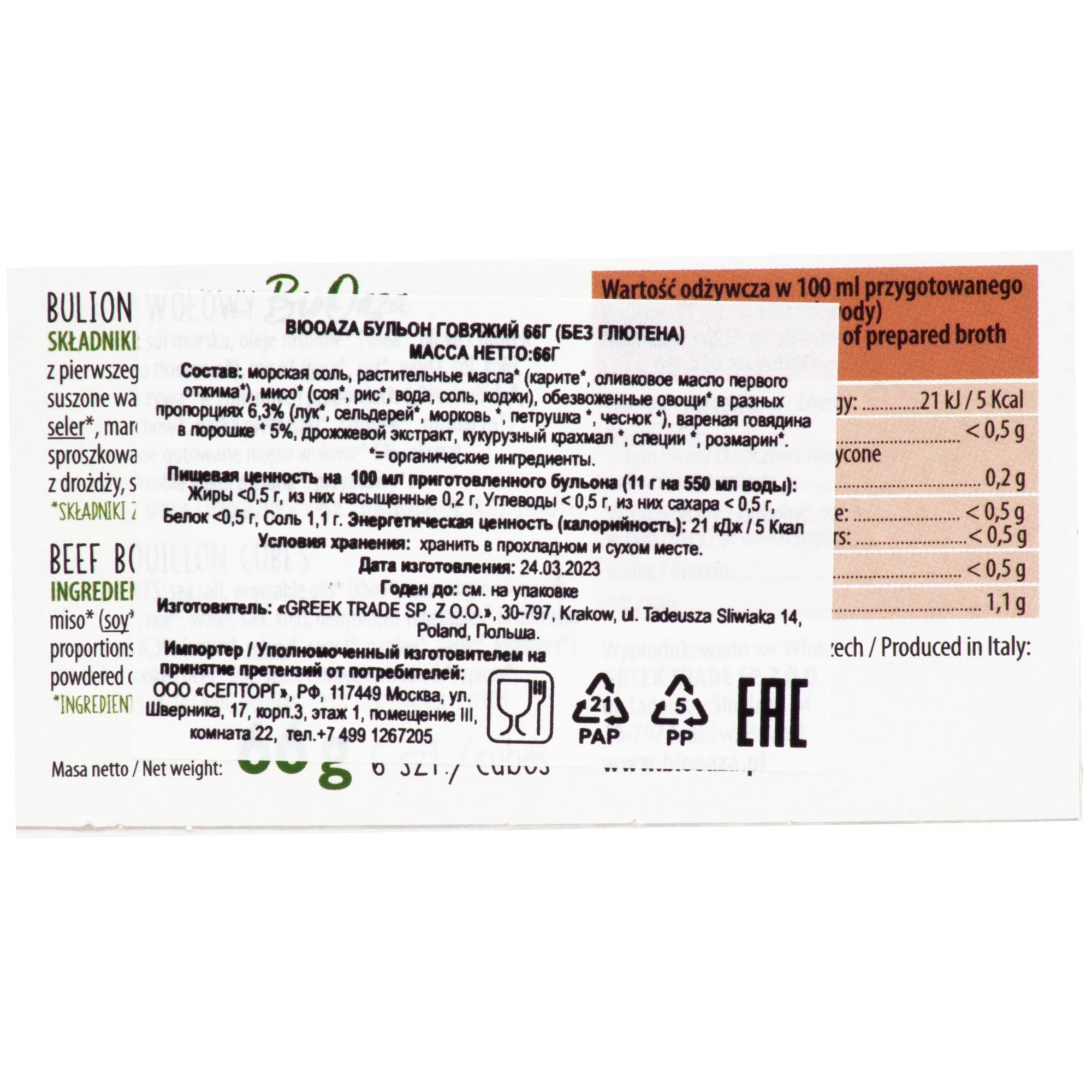 Говяжий натуральный Бульон Bio Oaza, без глютена, 6 кубиков