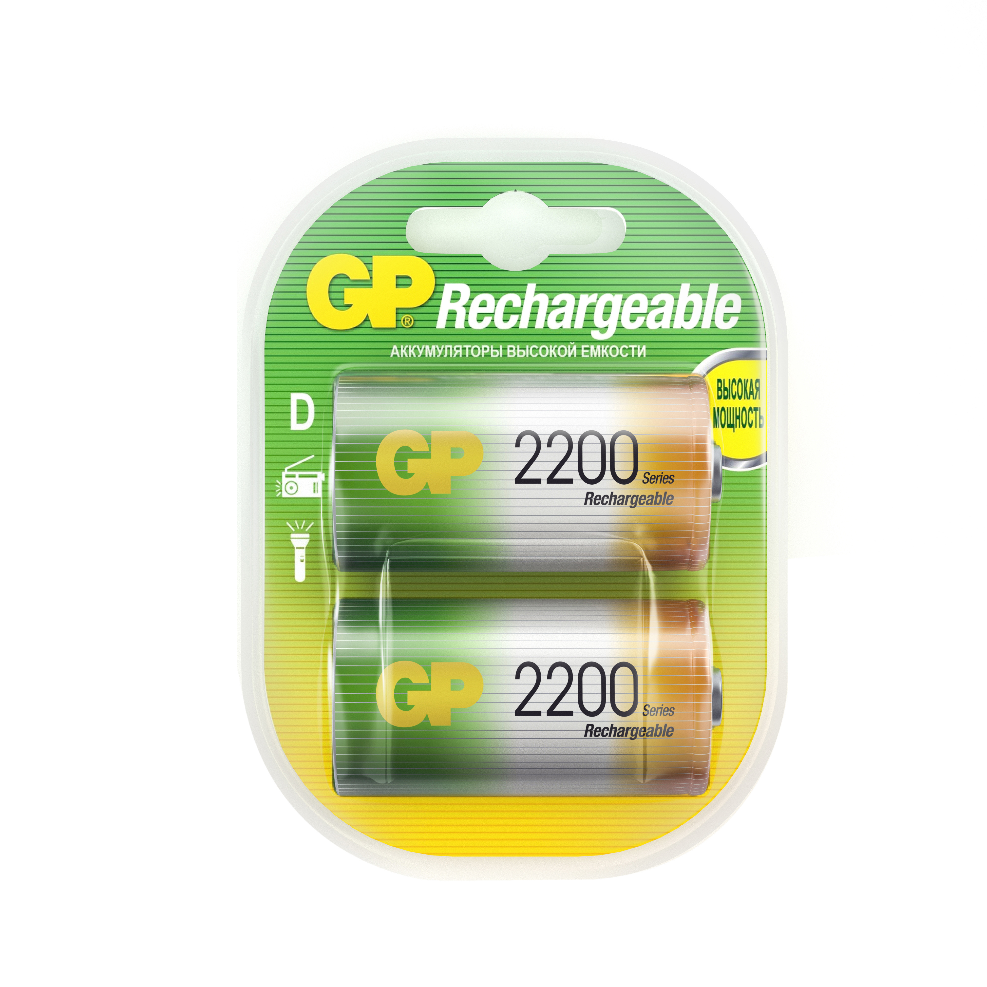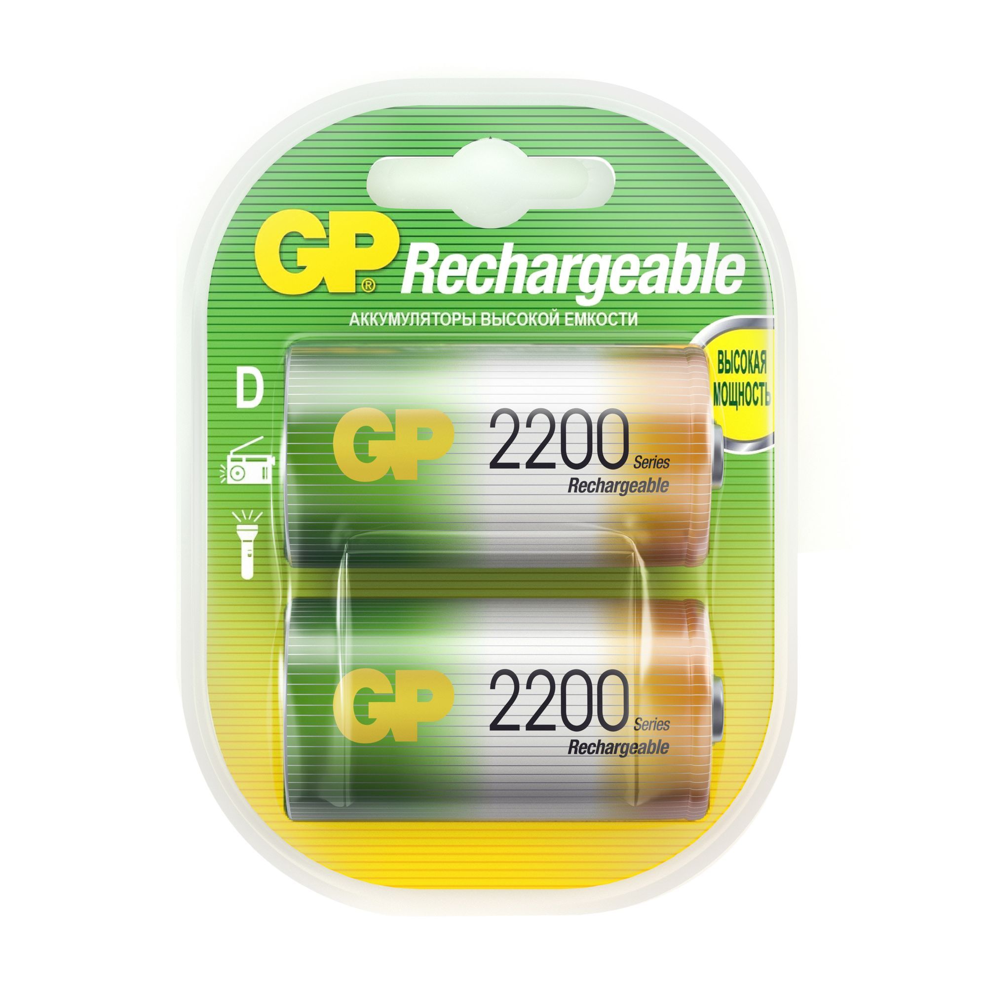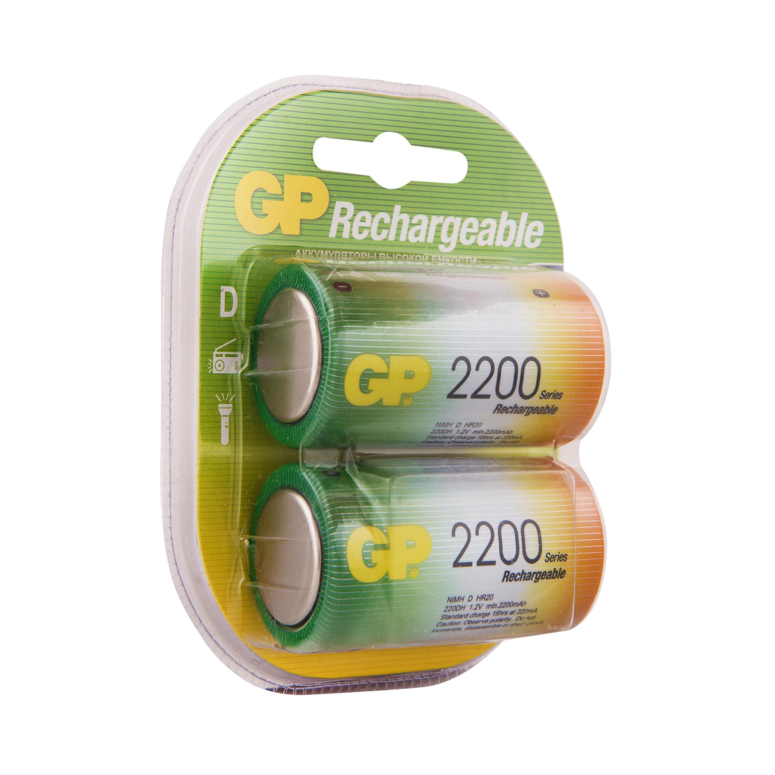 GP Аккумуляторная батарейка D, 1,2 В, 2200 мАч, 2 шт