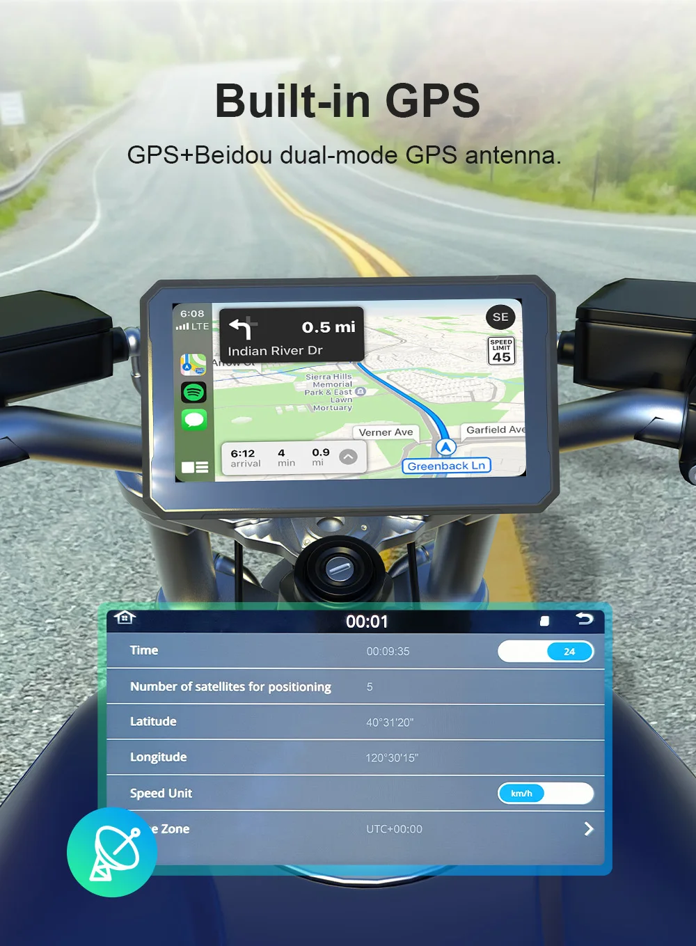 3. Отображение скорости в реальном времени:Он может отображать скорость мотоцикла в режиме реального времени через GPS во время вождения.