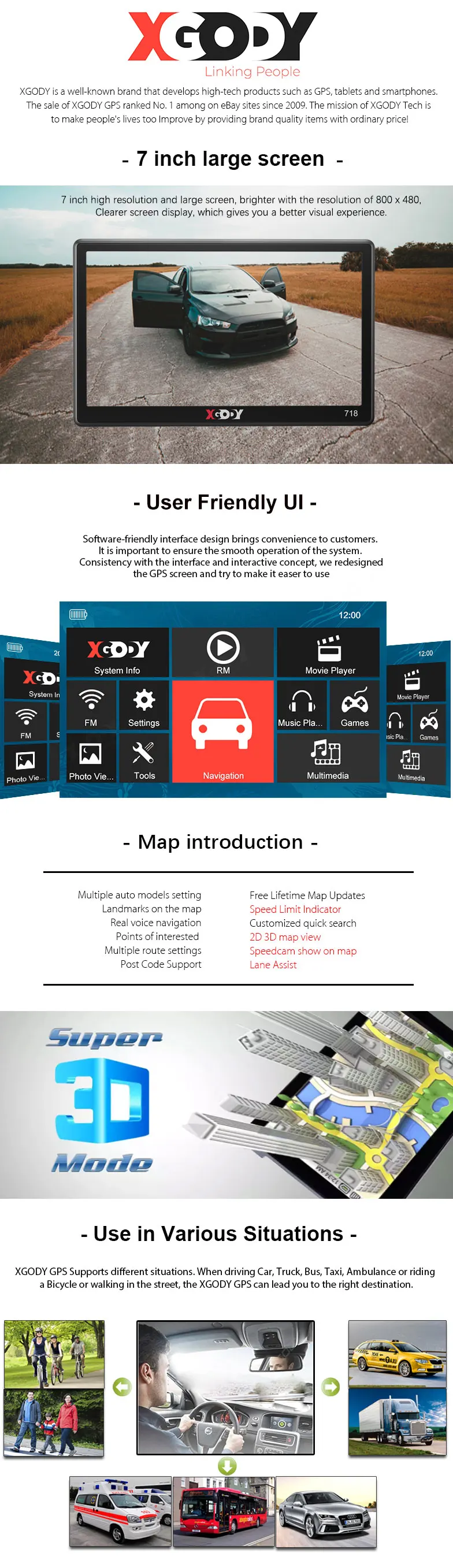 GPS-навигатор XGODY для грузовика, 7 дюймов, 256 м, 8 ГБ, сенсорный экран, поддержка Bluetooth, с солнцезащитным козырьком, спутниковая навигация, бесплатные обновления, навигация для автомобиля