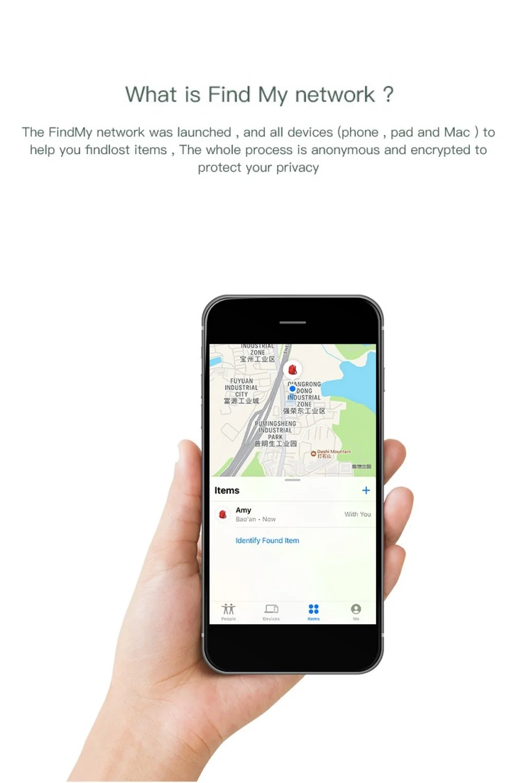 【Отслеживание без ограничения расстояния】: независимо от того, как далеко он от вас, его все равно можно отследить, пока рядом с вашим интеллектуальным трекером есть устройства других людей для iPhone/IPad/IOS