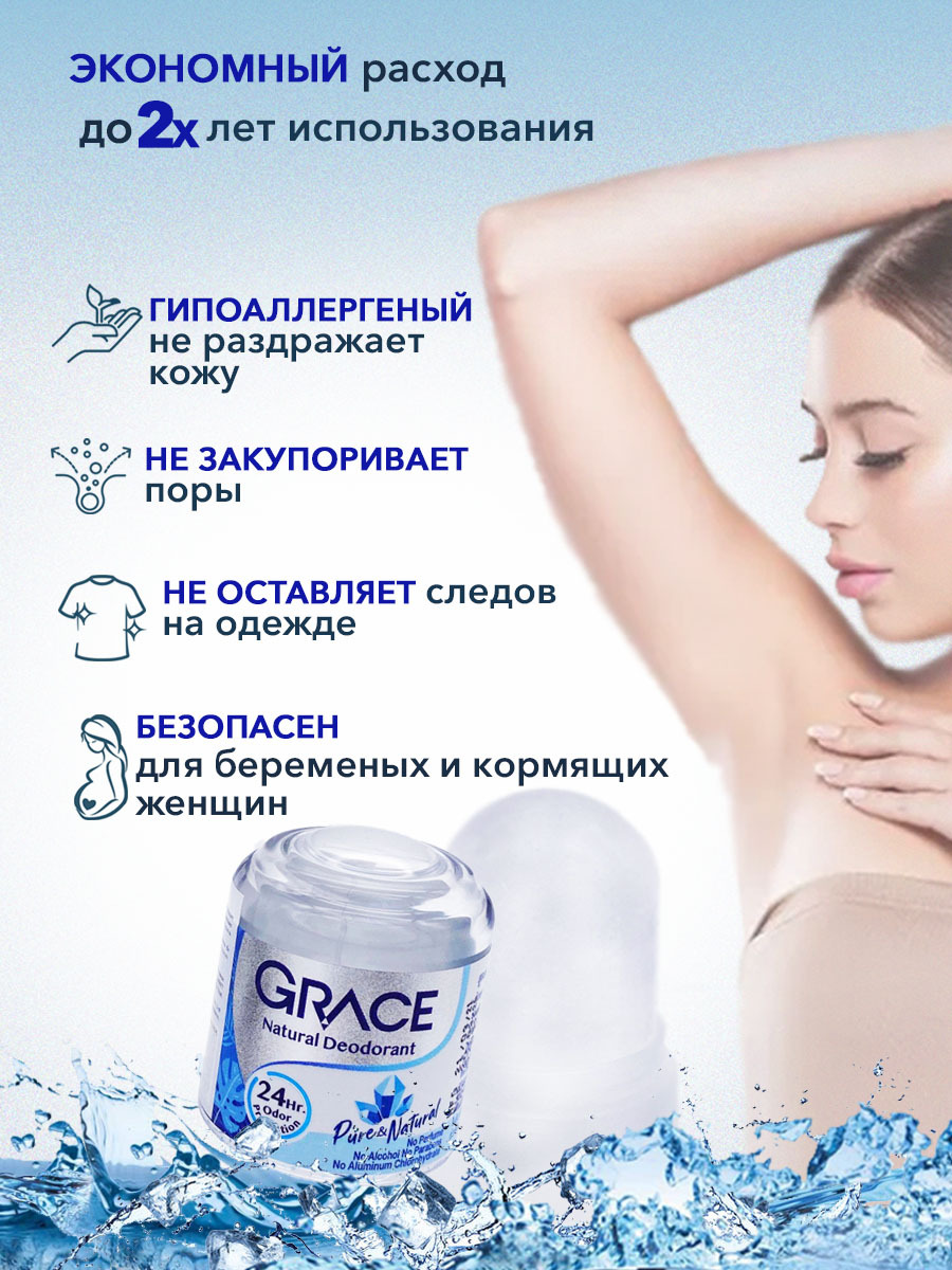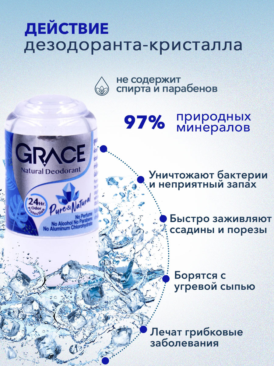 Grace Дезодорант - антиперспирант кристаллический Натуральный минеральный 70 гр без аллюминия