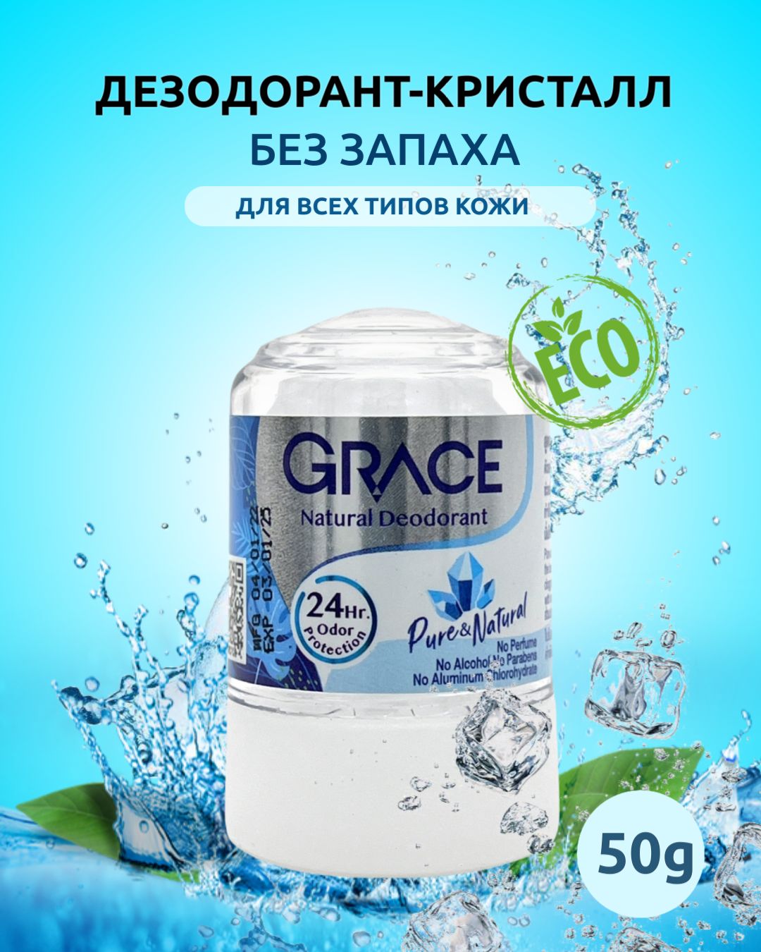 Grace Грейс Дезодорант - антиперспирант кристаллический Натуральный минеральный без алюминия (Grace Deodorant, 100% Pure and Natural) 50 g