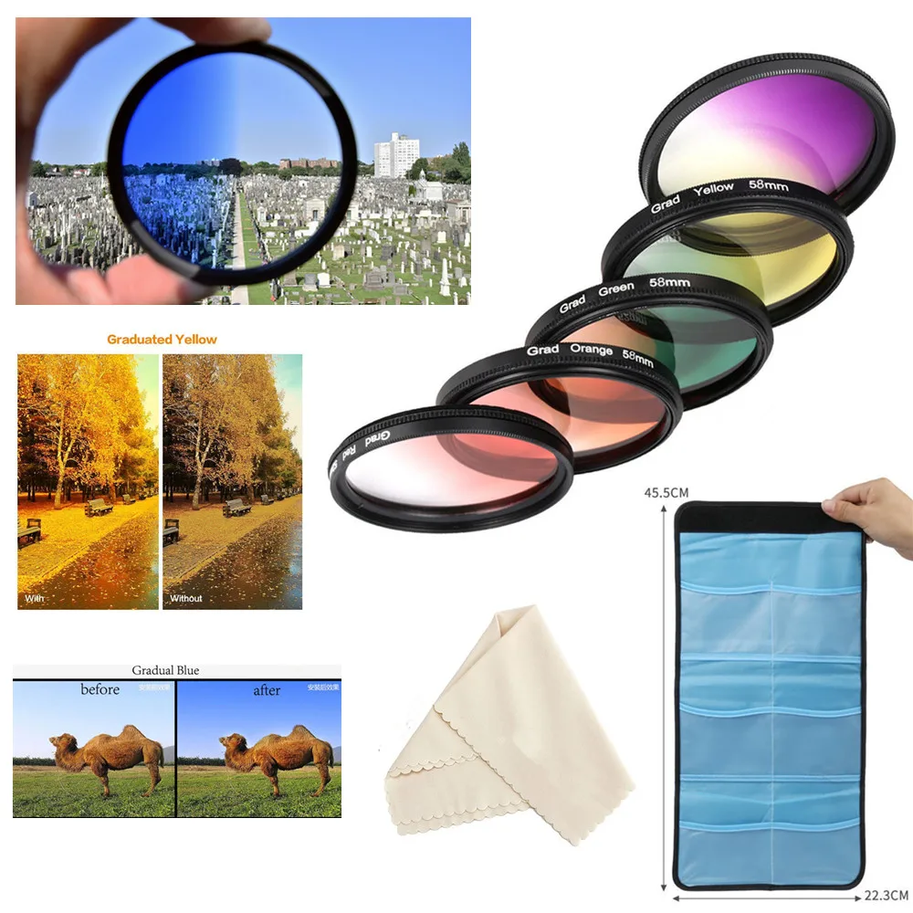 Градиентный цветной фильтр, красный, оранжевый, желтый, фиолетовый, синий, зеленый, 37, 40,5, 43, 46, 49, 52, 55, 58, 62, 67, 72, 77 мм для камер Canon, Nikon, Sony