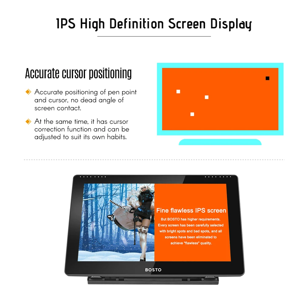 Эффект отображения:Большая Активная область рисования 13,4x7,7 дюйма, высокое разрешение 1920*1080, богатая глубина цвета 16,7 м, контрастность 1000:1, Яркость 250 кд/㎡ и угол обзора 178 °, который может поставить большой, ясный и обильный эффект дисплея перед вами.