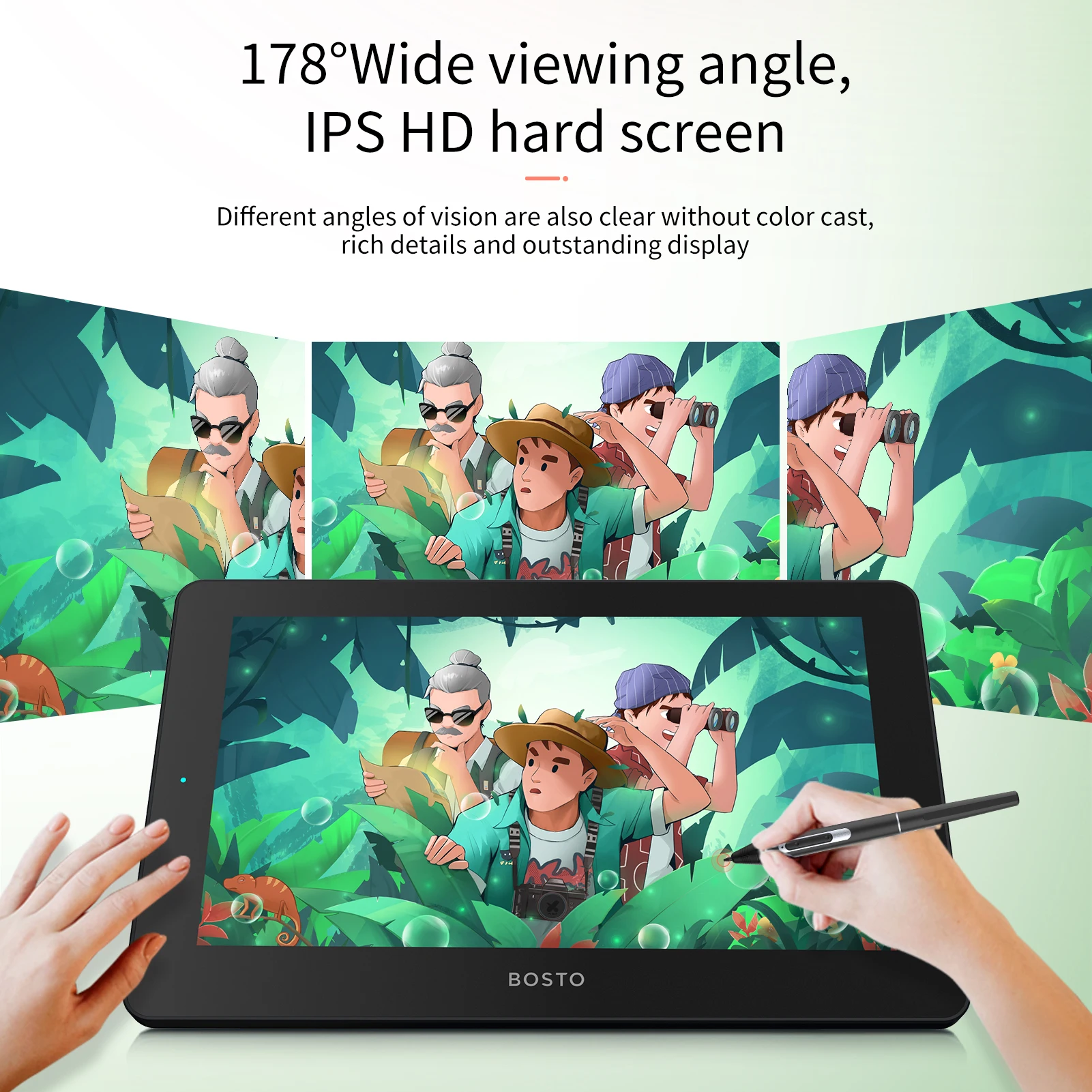 Графический планшет для рисования BOSTO, диагональ 11,6 дюйма, фотографический планшет, HD HIPS LCD 1366 PPS, дисплей 768*8192, уровень давления