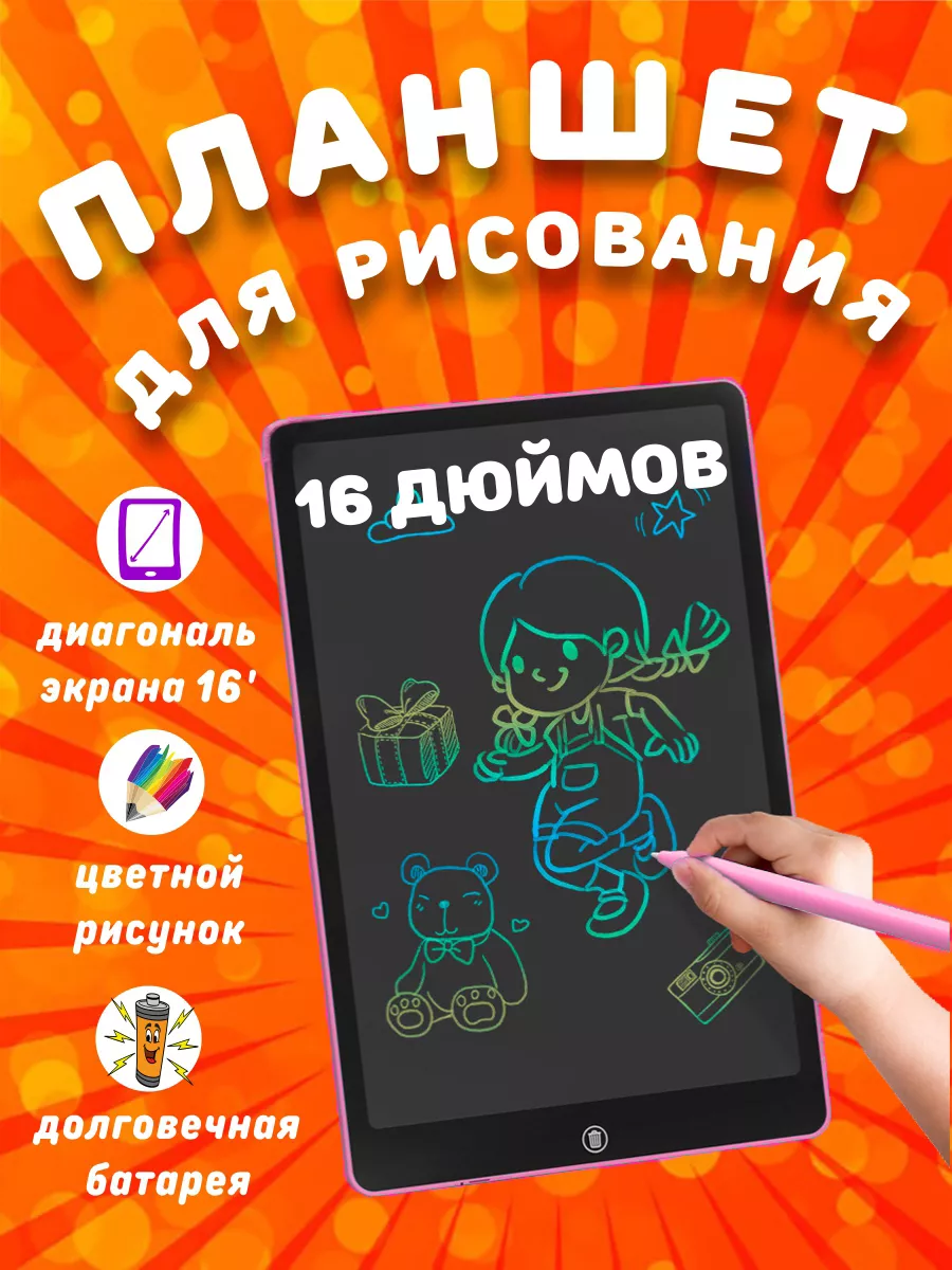 Графический планшет для рисования разноцветный 16 дюймов А4