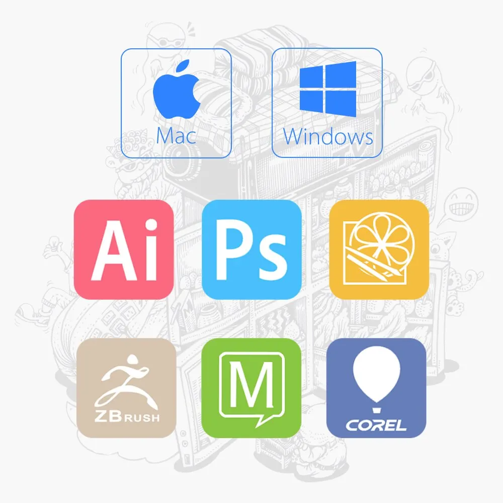 • Совместимость с несколькими устройствами :Этот цифровой планшет совместим с устройствами Windows, Mac и Chromebook, что делает его универсальным вариантом для разных пользователей.