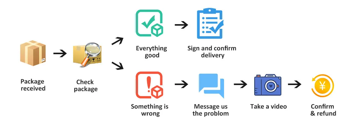 3. Пожалуйста, откройте посылку в присутствии сотрудника почты, если посылка повреждена или пуста (украдена), пожалуйста, попросите почтовое отделение предоставить официальный документ, особенно запрос на претензию.