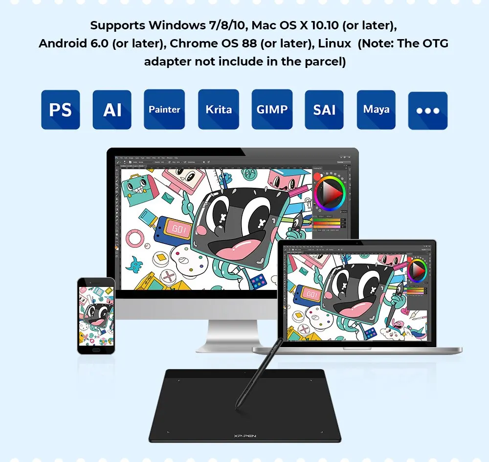 Планшет для рисования XPPen Deco Fun должен быть подключен к ноутбуку/настольному компьютеру/Chromebook для работы!