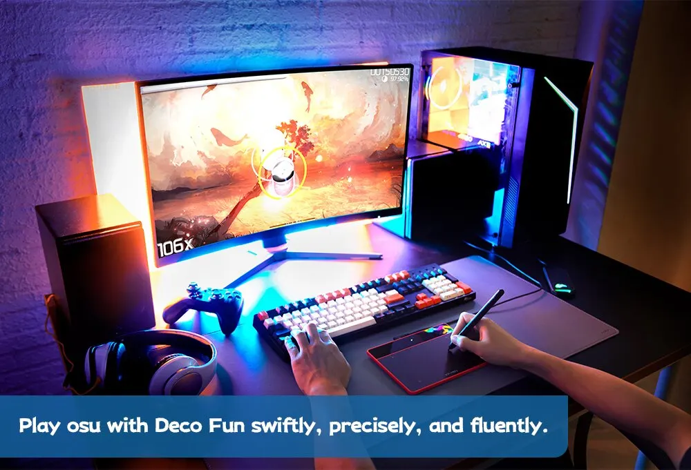 【Технология перье】 Цифровой графический планшет Deco Fun-идеальная замена традиционной мыши! Обладая до 8192 уровнями чувствительности к давлению, стилус создает естественные линии различной ширины, позволяя с легкостью создавать изысканные штрихи.