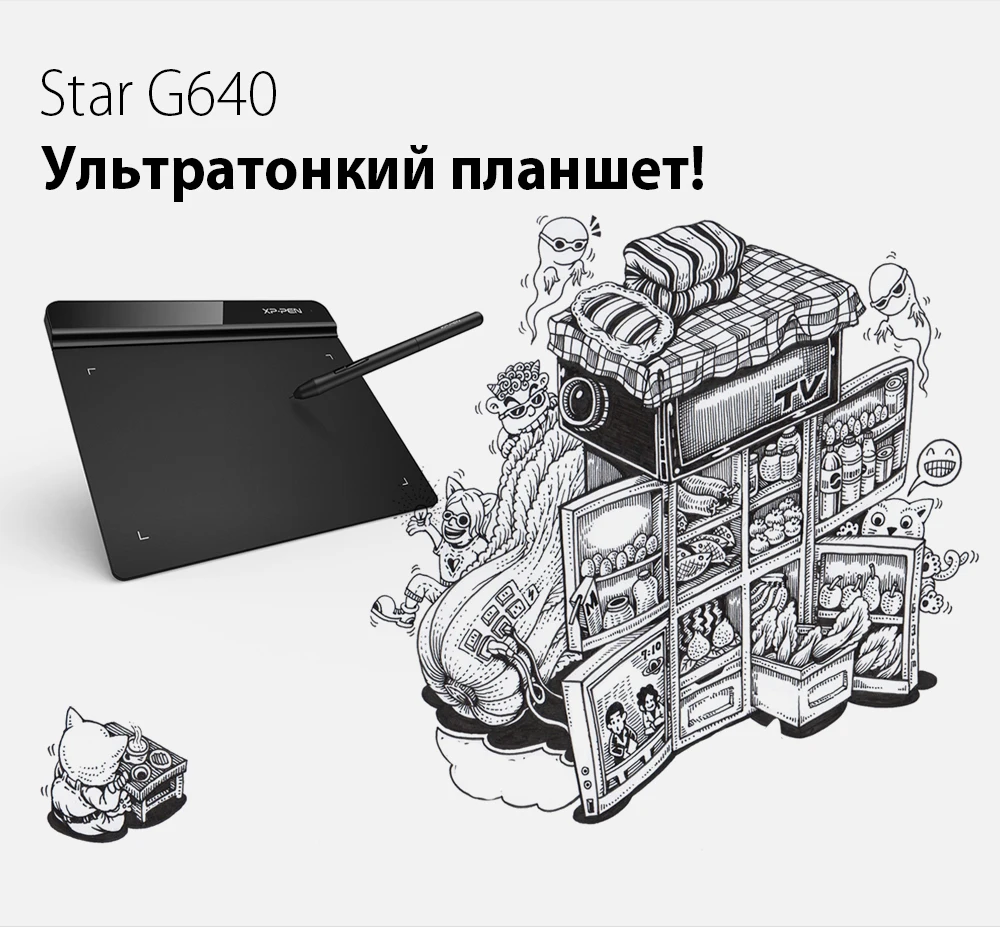 Графичесекий планшет XP-Pen Star G640 этокачественныйпластик, современныйдизайн, удобноеперо. Планшет оптимизированподработукакправой, такилевойрукой.