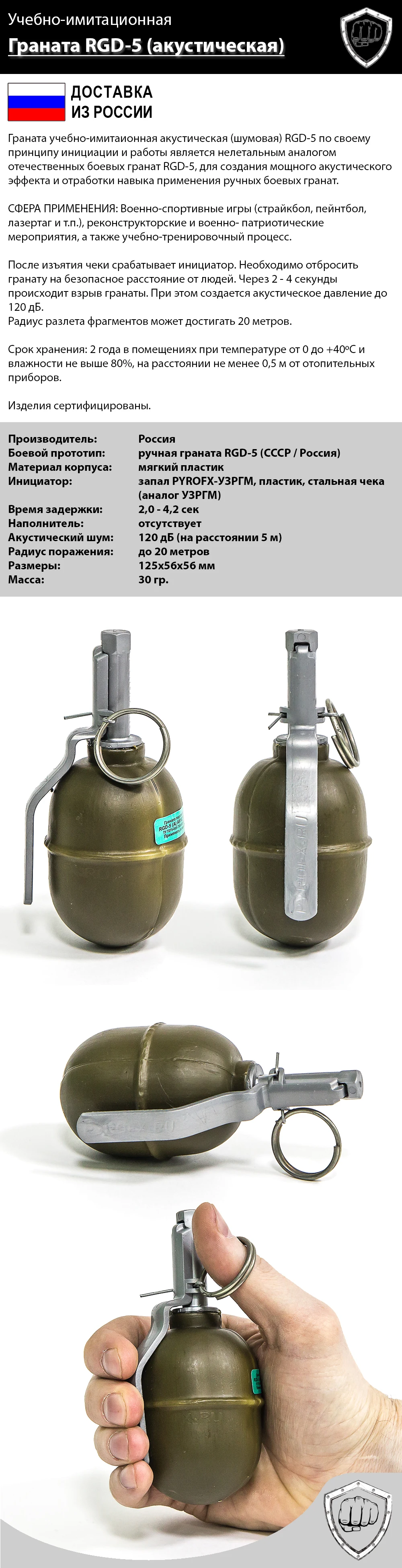 Граната РГД-5 шумовая акустическая для пейнтбола из легкого пластика