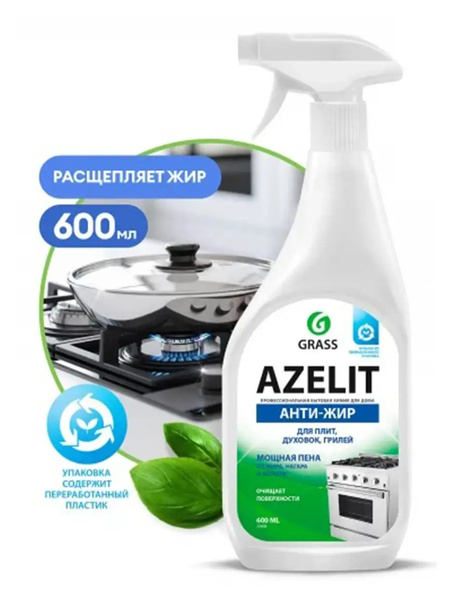 Описание: Бытовая химия Grass (ГраСС) Чистящее средство для кухни Azelit 600 мл Grass (ГраСС) Средство Азелит АНТИЖИР для удаления жира, нагара и копоти со сковородок, кухонных плит, коптильных камер, фритюрниц, грилей, духовых шкафов, микроволновых печей и др. Содержит активные чистящие вещества, которые помогают максимально эффективно справиться с застарелыми загрязнениями.Нанести на очищаемую поверхность, оставить не более чем на 30 секунд, в зависимости от загрязнения можно увеличить время экспозиции до 2 минут." Состав: ≥30% вода, <5%: неионогенные ПАВ, соль ЭДТА, гидроксид натрия, гидроксид калия, органический растворитель, ароматизирующая добавка.
