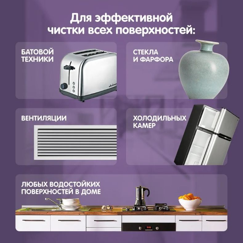 Для мойки погружением, замачиванием, распылением: удалить остатки пищи, разбавить концентрат в соотношении 1:200-1:400 или 2,5-5 мл/л воды. После обработки тщательно прополоскать в чистой воде.