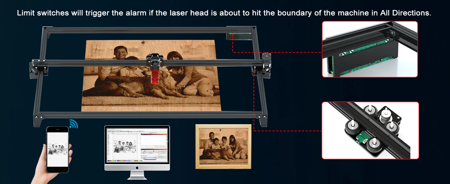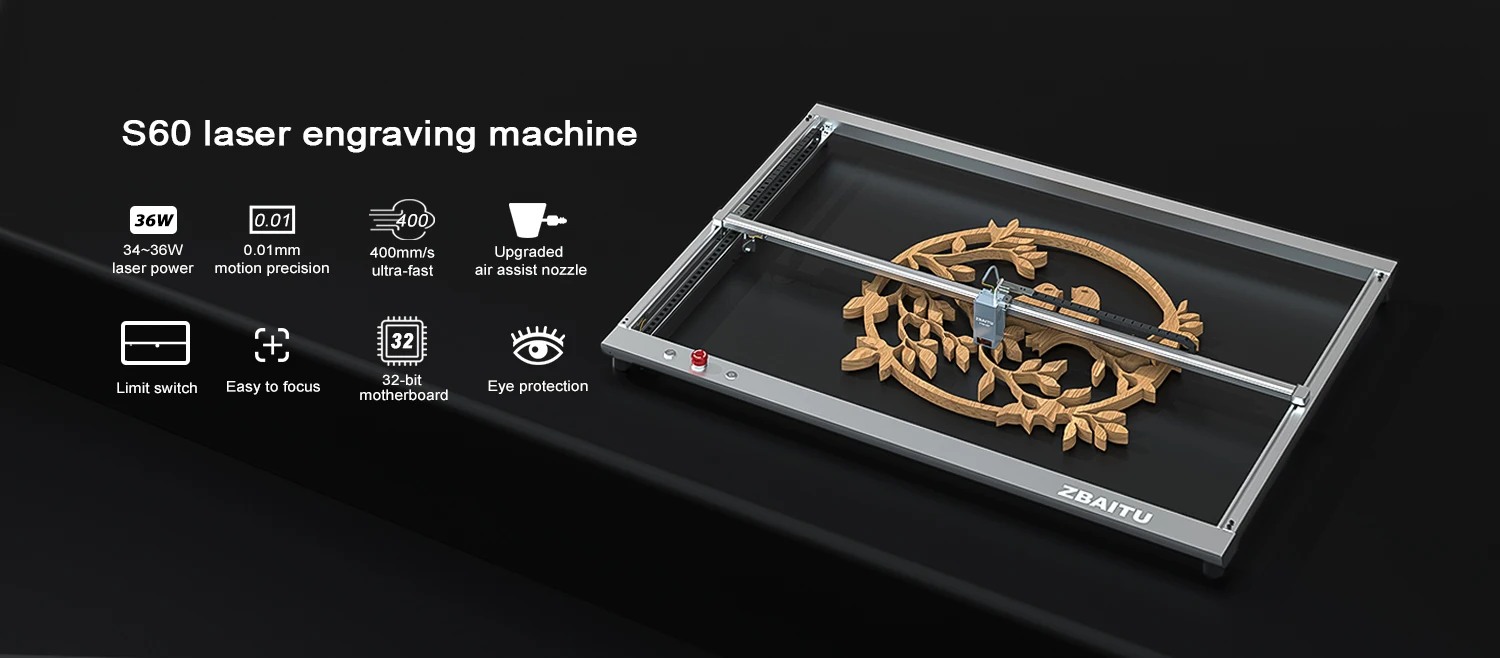 Прочная и простая установка конструкции:Лазерный гравер ZBAITU имеет конструкцию стальной конструкции промышленного класса, что делает лазерный резак и гравер более надежным и повышает точность гравировки.
