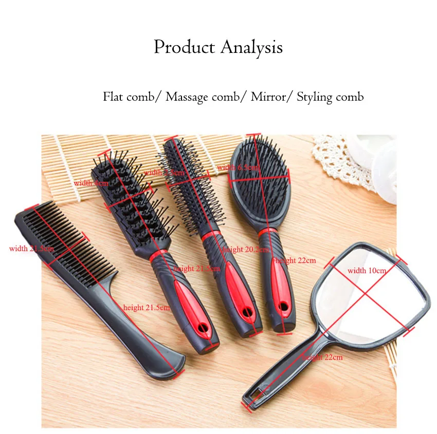 Гребень для стрижки волос + зеркало + держатель для хранения Профессиональные Антистатические гребни для укладки волос «сделай сам», инструменты для макияжа, 5 шт./компл.
