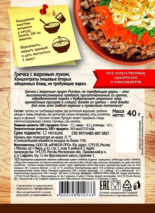 Гречка с жареным луком "Preston", 40гр x 20шт