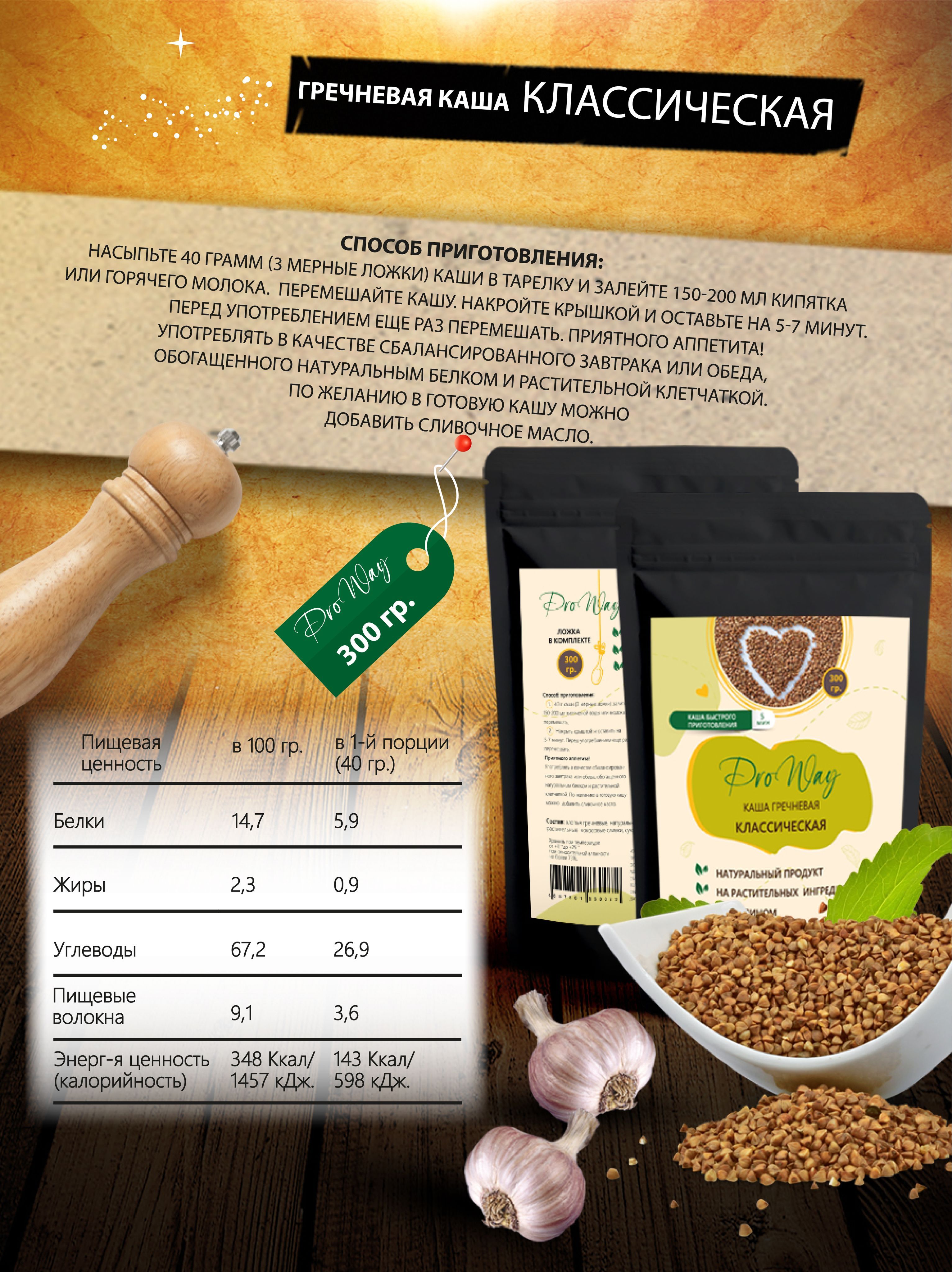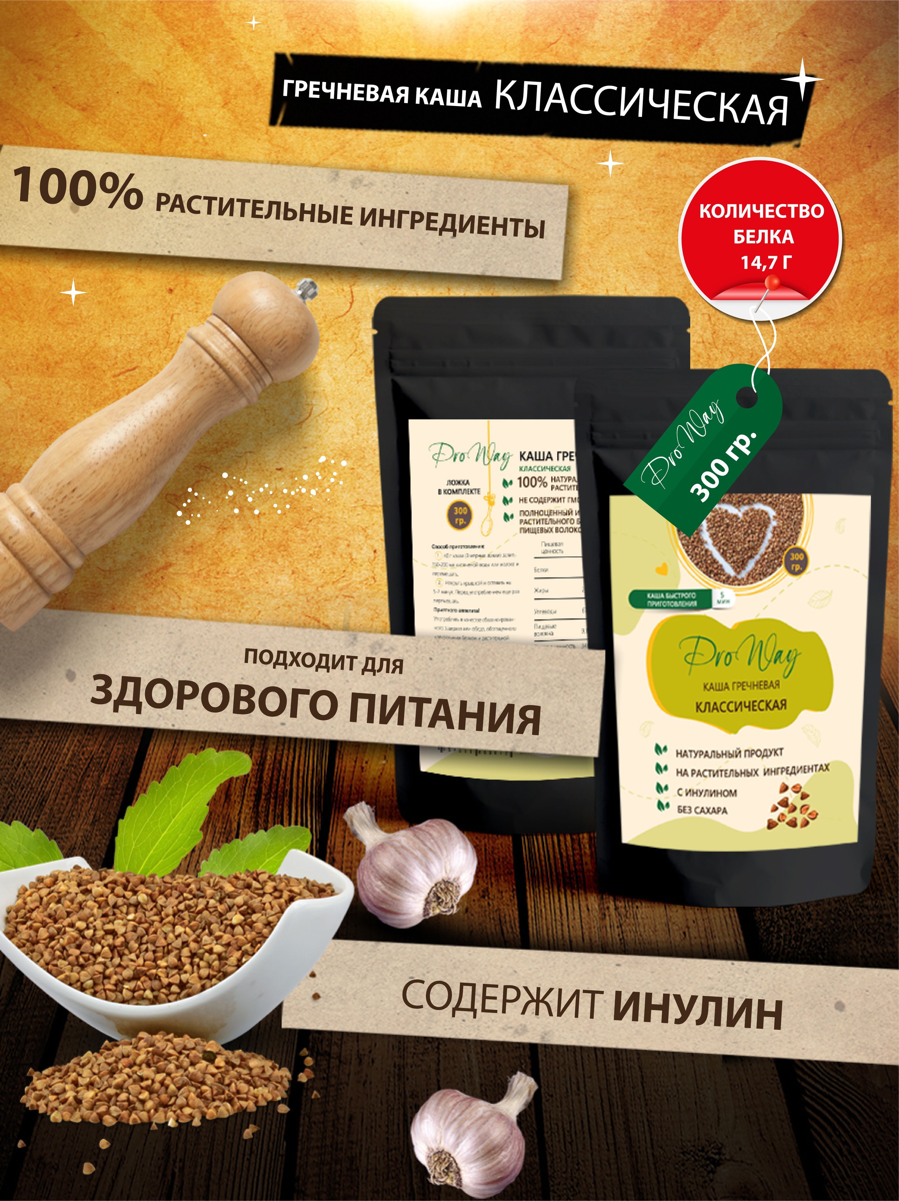 Гречневая каша на растительном протеине быстрого приготовления с классическим вкусом, 300гр