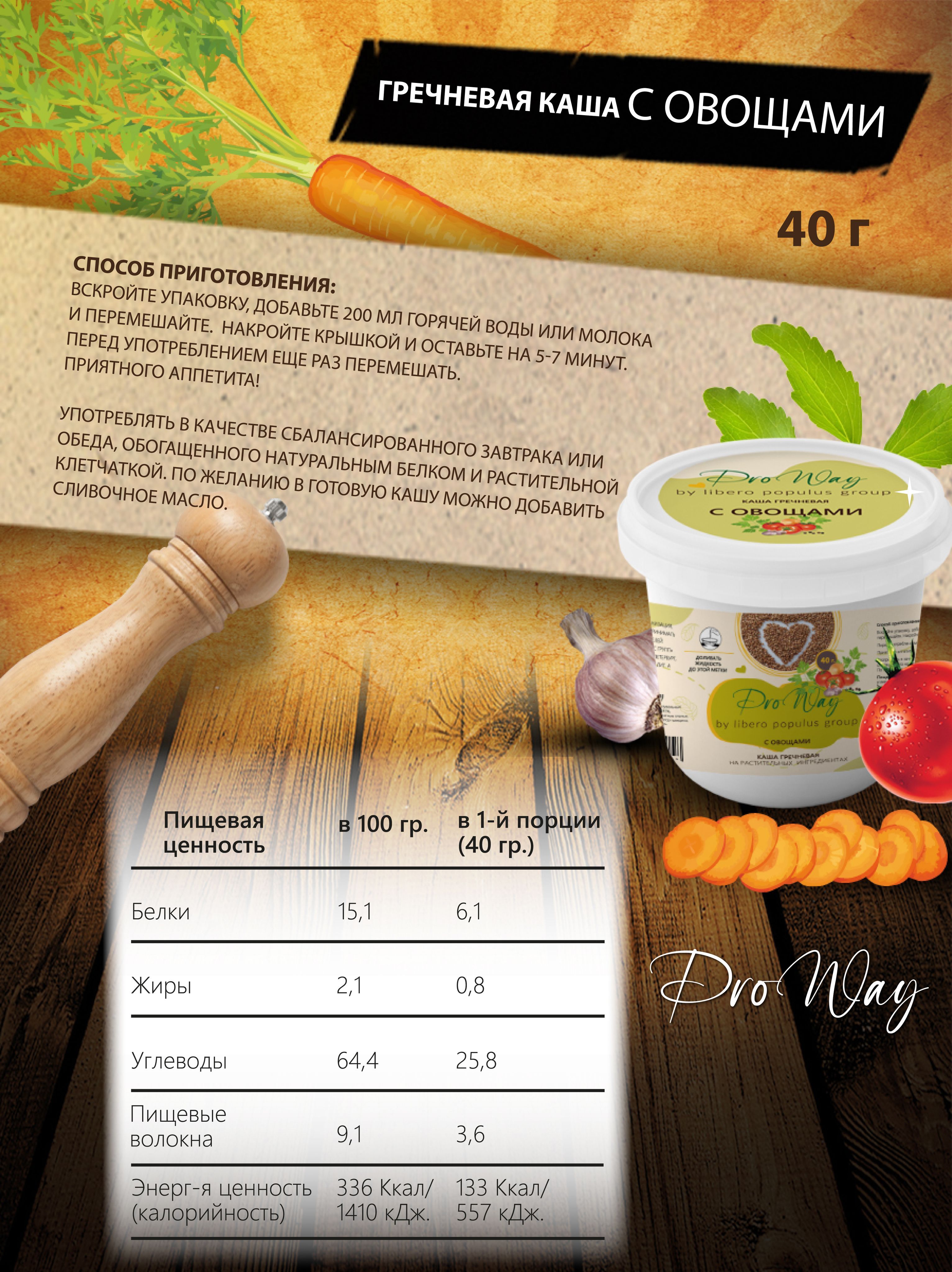 Гречневая каша на растительном протеине быстрого приготовления с овощами, упаковка 6шт