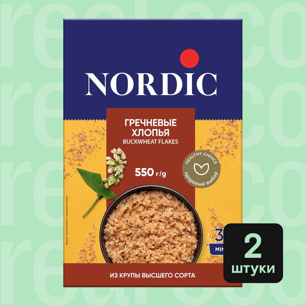 Гречневые хлопья Nordic, быстрого приготовления, 2 упаковки по 550г