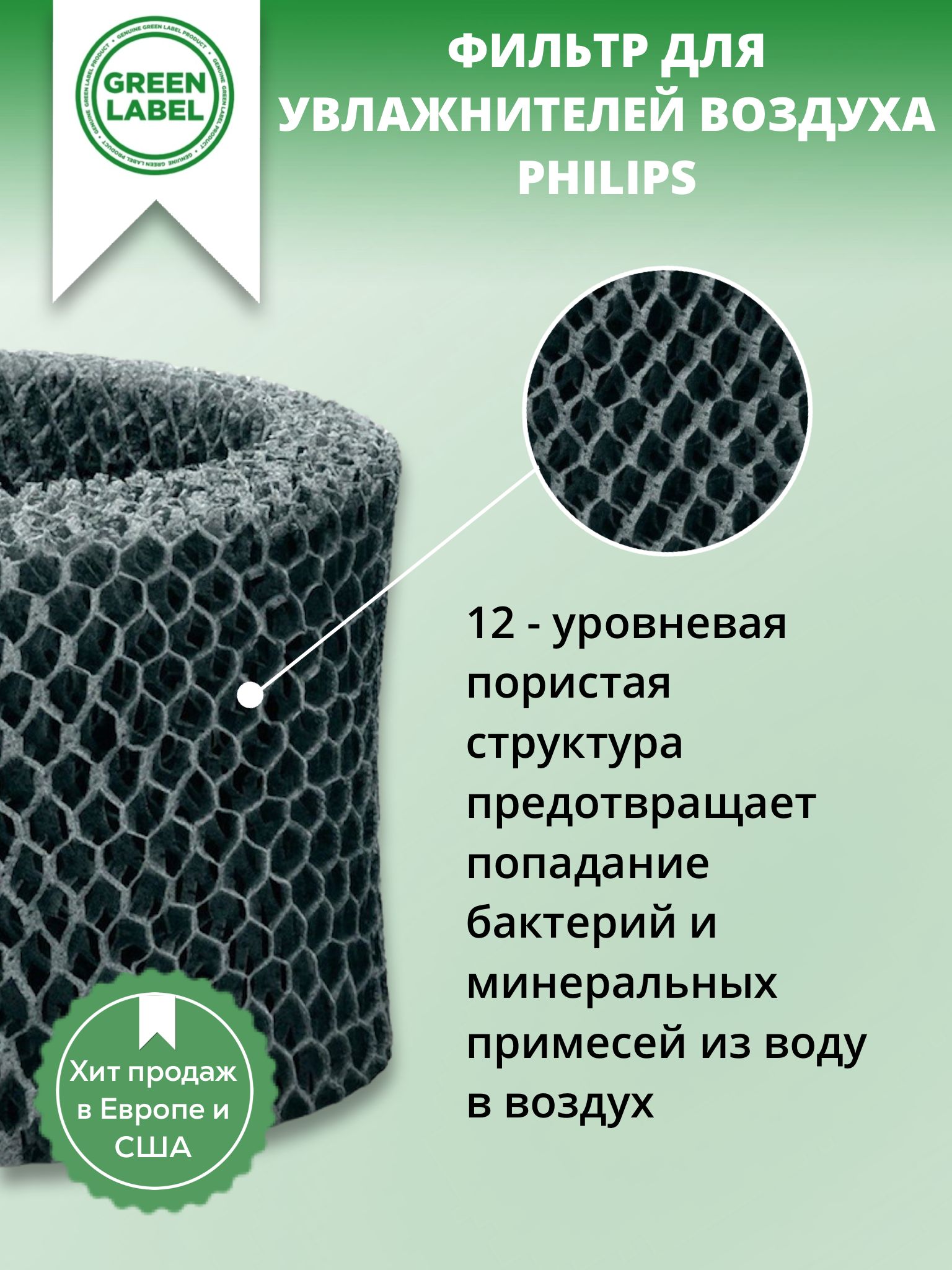 Описание: Благодаря 12-уровневой пористой структуре, увлажняющий фильтр обеспечивает оптимальный уровень поглощения влаги и эффективное испарение.